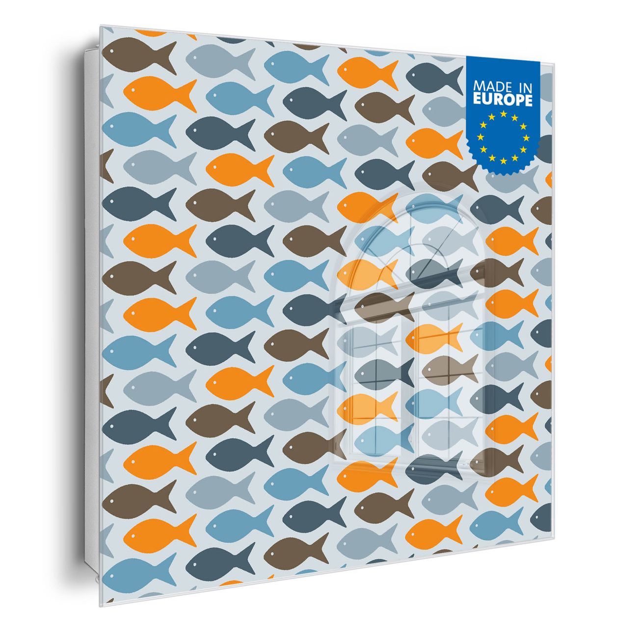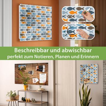 Bringe Ordnung und Eleganz in deinen Eingangsbereich mit dem banjado Schlüsselkasten Motiv Motiv Bunte Fische. Die moderne Schlüsselbox kombiniert funktionales Design mit hochwertiger Verarbeitung und wird so zu einem echten Hingucker in Flur, Büro oder Ferienwohnung. ✅ Stilvolle Schlüsselaufbewahrung mit Glasfront im Motiv Motiv Bunte Fische Der Design-Schlüsselkasten Motiv Motiv Bunte Fische bietet Platz für bis zu 50 Schlüssel, die auf 5 stabilen Reihen mit je 10 Haken übersichtlich verstaut werden. Mit seinen kompakten Maßen von 30 x 30 x 5 cm passt die Schlüsselbox perfekt auch in kleinere Räume. Der weiß lackierte Stahlkorpus mit rechts angeschlagenem Türscharnier harmoniert mit der Glasfront und fügt sich nahtlos in jedes Wohnambiente ein. Ob als Schlüsselorganizer für Zuhause oder als praktische Lösung für Büros, Praxen und Gewerbe, der banjado Schlüsselkasten sorgt für Ordnung und Übersicht. Dank der magnetischen, mit Kreidestiften beschreibbaren Glasfront kannst du Notizen anheften oder Termine direkt auf der Oberfläche festhalten. Die Schlüsselbox Motiv Motiv Bunte Fische zur Wandmontage wird inklusive Befestigungsmaterial geliefert und ist schnell angebracht. So hast du deine Schlüssel jederzeit griffbereit und zugleich stilvoll verstaut. Mit diesem banjado Schlüsselkasten Motiv Motiv Bunte Fische kombinierst du praktische Aufbewahrung mit stilvollem Wohndesign. Ob privat oder geschäftlich, die Schlüsselbox sorgt für mehr Ordnung, Übersicht und ein wohnliches Ambiente.Vorteile im Überblick