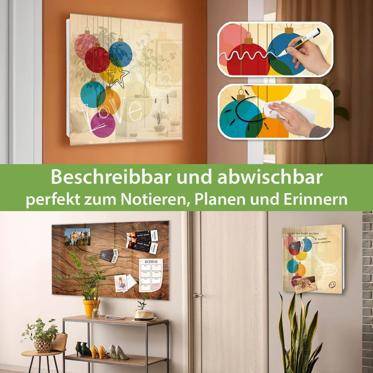 ✅ Magnetisch und mit Kreidestift beschreibbar, gehärtetes Glas, rechts angeschlagene TürOrdnung und Design in einem