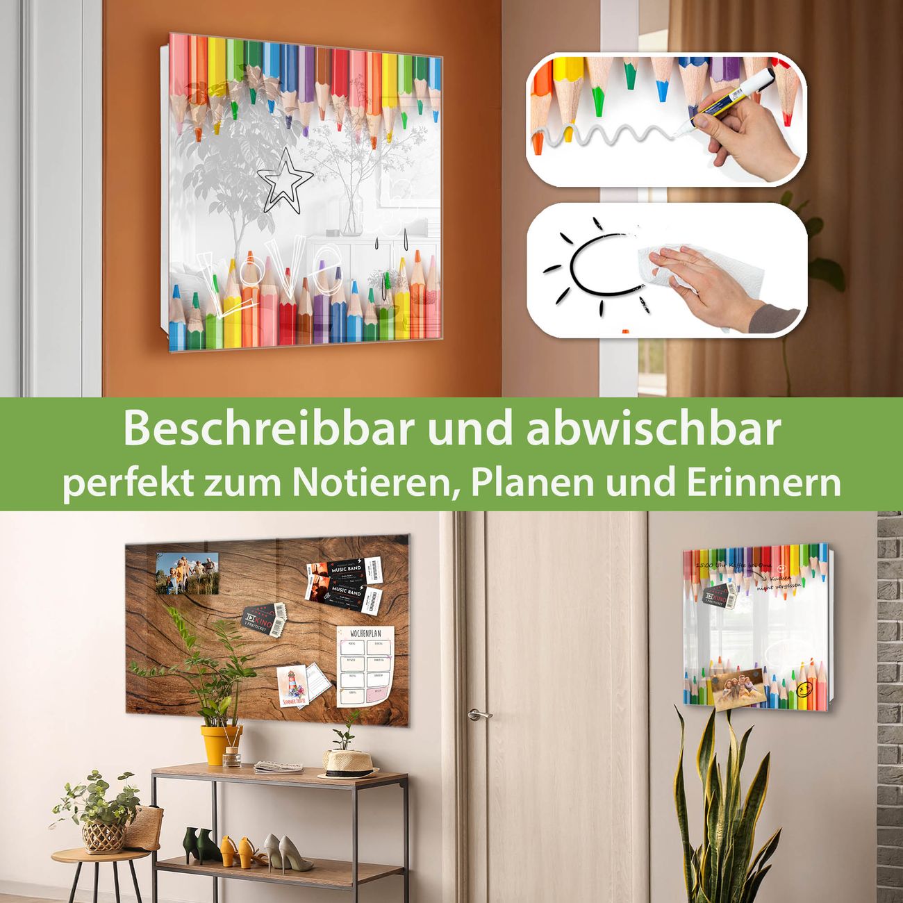 ✅ Magnetisch und mit Kreidestift beschreibbar, gehärtetes Glas, rechts angeschlagene TürOrdnung und Design in einem