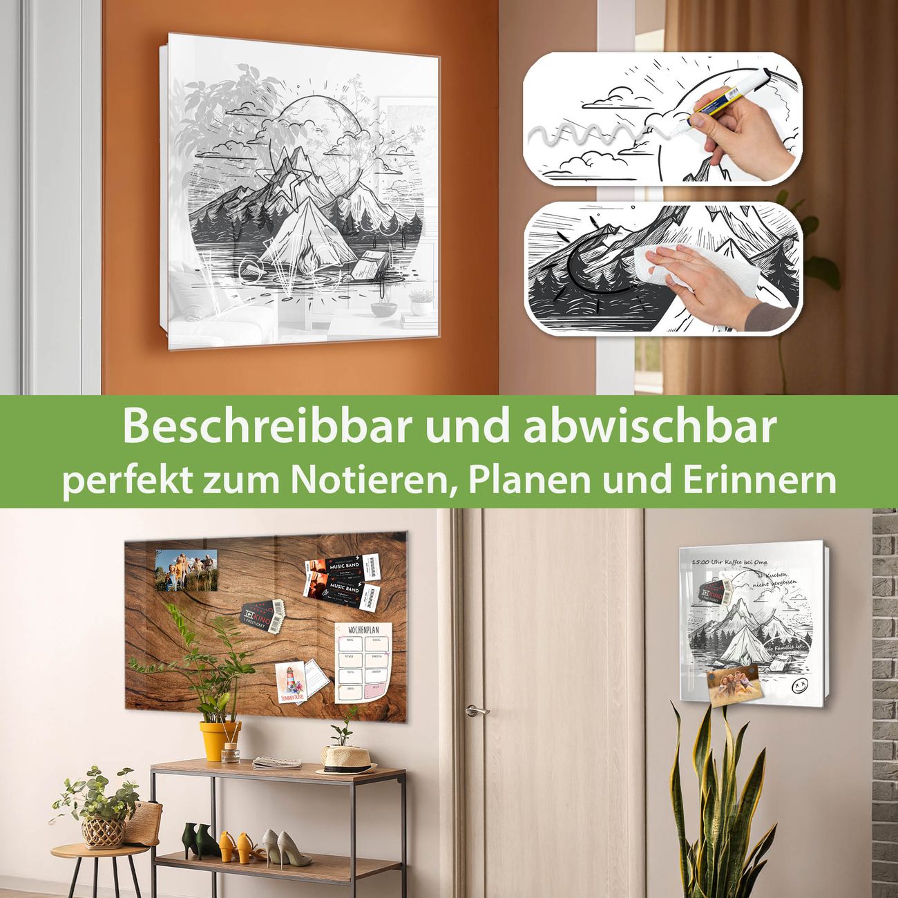 ✅ Magnetisch und mit Kreidestift beschreibbar, gehärtetes Glas, rechts angeschlagene TürOrdnung und Design in einem