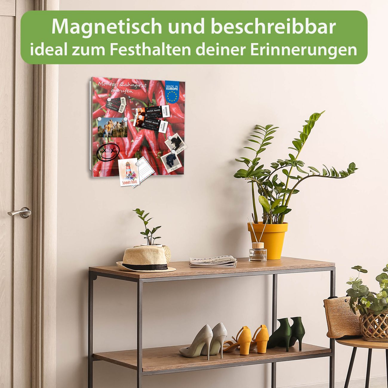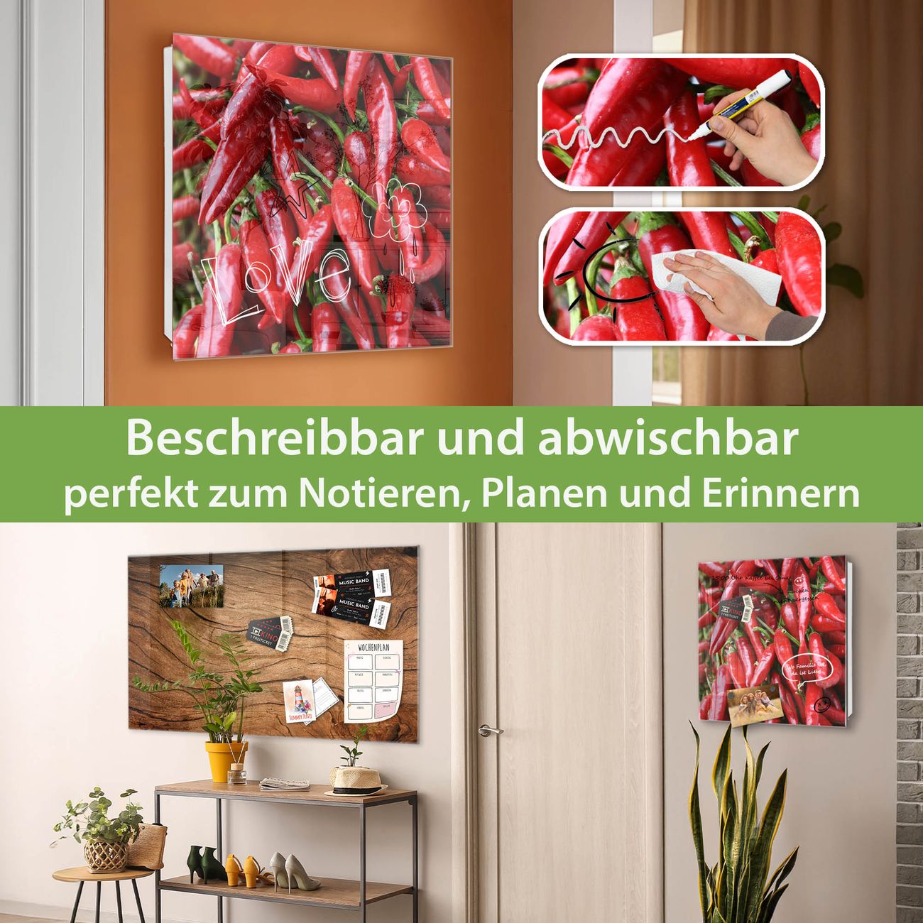 ✅ Magnetisch und mit Kreidestift beschreibbar, gehärtetes Glas, links angeschlagene TürOrdnung und Design in einem