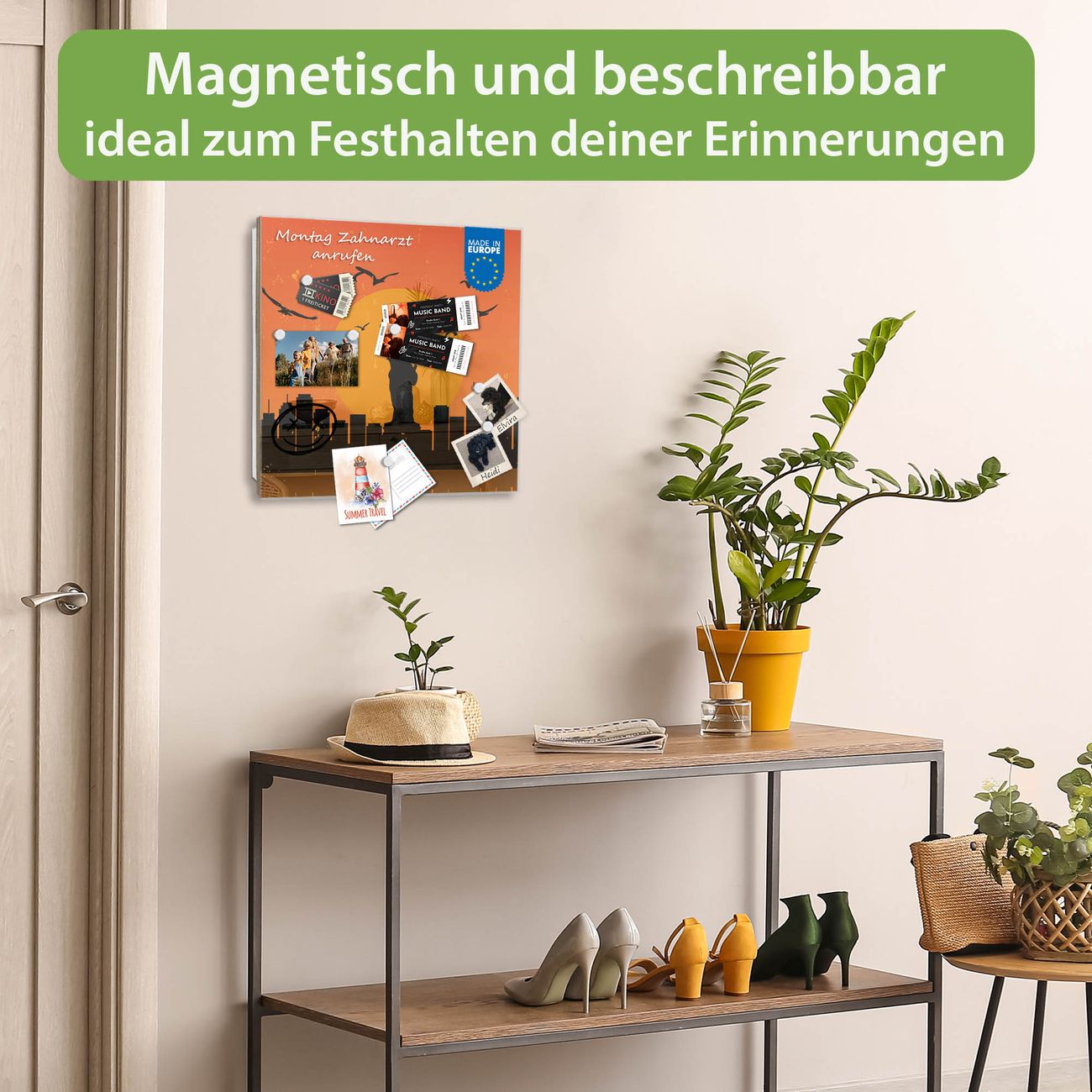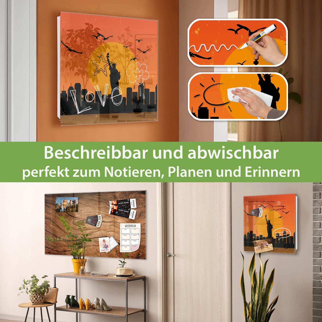 ✅ Magnetisch und mit Kreidestift beschreibbar, gehärtetes Glas, links angeschlagene TürOrdnung und Design in einem
