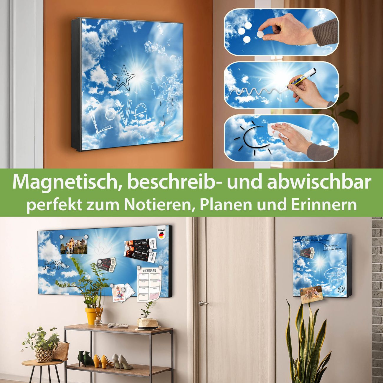 ✅ Magnetisch und mit Kreidestift beschreibbar, links angeschlagene TürOrdnung und Design in einem