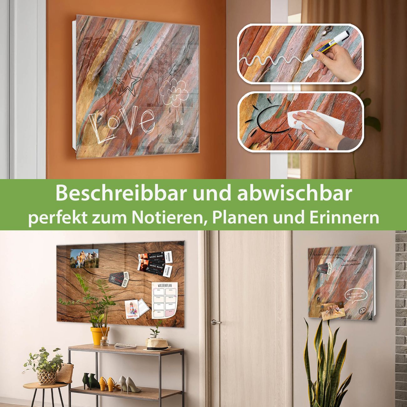 ✅ Magnetisch und mit Kreidestift beschreibbar, gehärtetes Glas, rechts angeschlagene TürOrdnung und Design in einem