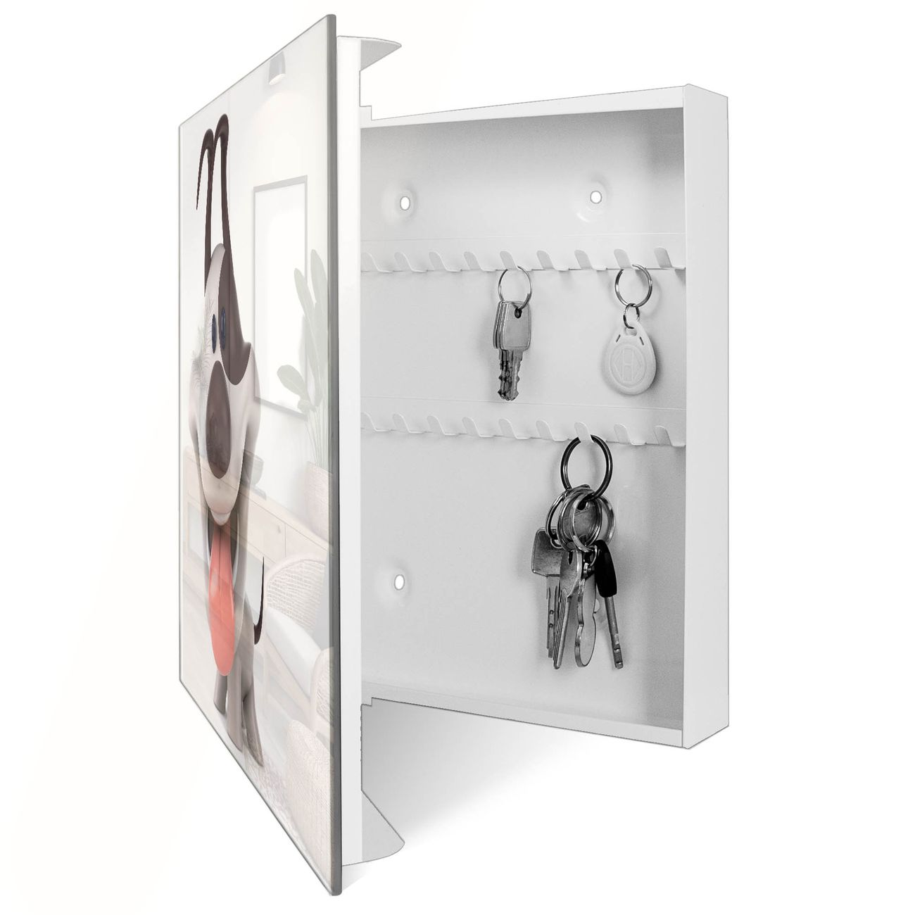 Schlüsselkasten Glas Motiv Comic-Hund