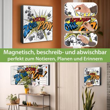 Bringe Ordnung und Eleganz in deinen Eingangsbereich mit dem banjado Schlüsselkasten Motiv Motiv Comic. Die moderne Schlüsselbox kombiniert funktionales Design mit hochwertiger Verarbeitung und wird so zu einem echten Hingucker in Flur, Büro oder Ferienwohnung. ✅ Stilvolle Schlüsselaufbewahrung mit Motiv Motiv Comic Der Design-Schlüsselkasten Motiv Motiv Comic bietet Platz für bis zu 32 Schlüssel, die auf 4 stabilen Reihen mit je 8 Haken übersichtlich verstaut werden. Mit seinen kompakten Maßen von 30 x 30 x 5 cm passt die Schlüsselbox perfekt auch in kleinere Räume. Der schwarz lackierte Stahlkorpus mit links angeschlagenem Türscharnier harmoniert mit gedruckten Folie auf der Front und fügt sich nahtlos in jedes Wohnambiente ein. Ob als Schlüsselorganizer für Zuhause oder als praktische Lösung für Büros, Praxen und Gewerbe, der banjado Schlüsselkasten sorgt für Ordnung und Übersicht. Dank der magnetischen, mit Kreidestiften beschreibbaren Folie auf der Front kannst du Notizen anheften oder Termine direkt auf der Oberfläche festhalten. Die Schlüsselbox Motiv Motiv Comic zur Wandmontage wird inklusive Befestigungsmaterial geliefert und ist schnell angebracht. So hast du deine Schlüssel jederzeit griffbereit und zugleich stilvoll verstaut. Mit diesem banjado Schlüsselkasten Motiv Motiv Comic kombinierst du praktische Aufbewahrung mit stilvollem Wohndesign. Ob privat oder geschäftlich, die Schlüsselbox sorgt für mehr Ordnung, Übersicht und ein wohnliches Ambiente.Vorteile im Überblick