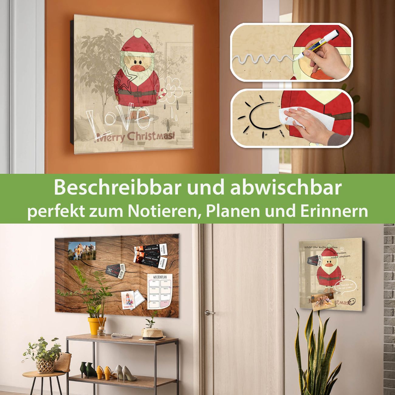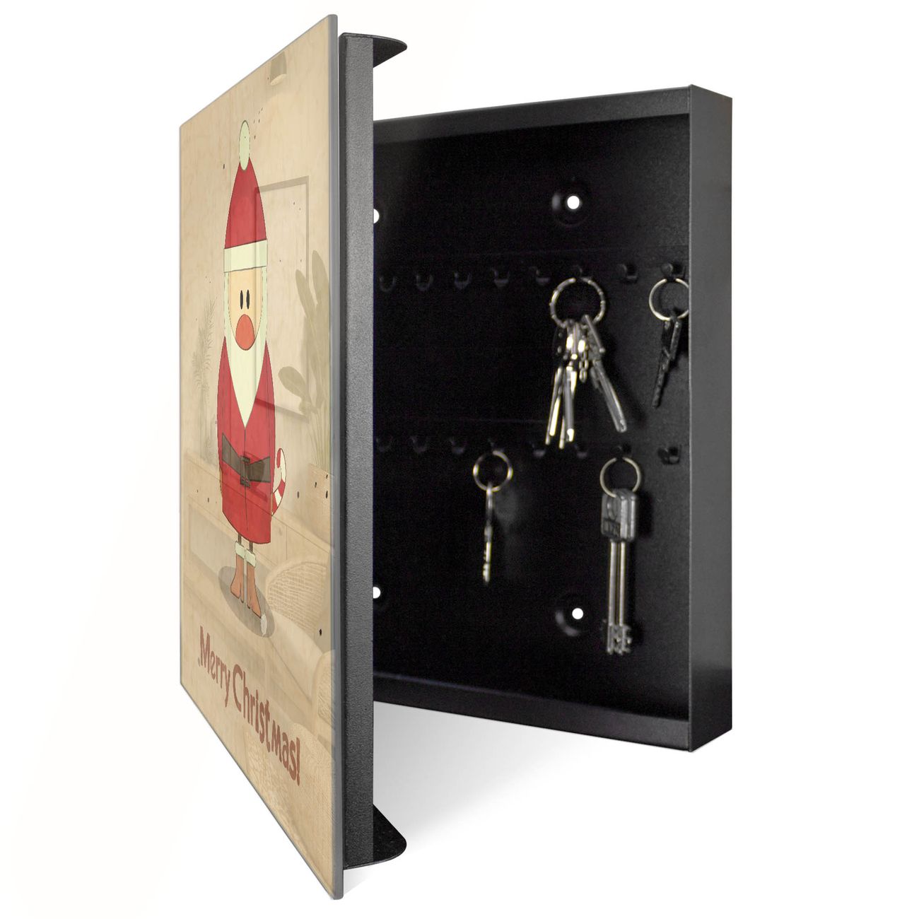Bringe Ordnung und Eleganz in deinen Eingangsbereich mit dem banjado Schlüsselkasten Motiv Motiv Cute Claus. Die moderne Schlüsselbox kombiniert funktionales Design mit hochwertiger Verarbeitung und wird so zu einem echten Hingucker in Flur, Büro oder Ferienwohnung. ✅ Stilvolle Schlüsselaufbewahrung mit Glasfront im Motiv Motiv Cute Claus Der Design-Schlüsselkasten Motiv Motiv Cute Claus bietet Platz für bis zu 50 Schlüssel, die auf 5 stabilen Reihen mit je 10 Haken übersichtlich verstaut werden. Mit seinen kompakten Maßen von 30 x 30 x 5 cm passt die Schlüsselbox perfekt auch in kleinere Räume. Der schwarz lackierte Stahlkorpus mit rechts angeschlagenem Türscharnier harmoniert mit der Glasfront und fügt sich nahtlos in jedes Wohnambiente ein. Ob als Schlüsselorganizer für Zuhause oder als praktische Lösung für Büros, Praxen und Gewerbe, der banjado Schlüsselkasten sorgt für Ordnung und Übersicht. Dank der magnetischen, mit Kreidestiften beschreibbaren Glasfront kannst du Notizen anheften oder Termine direkt auf der Oberfläche festhalten. Die Schlüsselbox Motiv Motiv Cute Claus zur Wandmontage wird inklusive Befestigungsmaterial geliefert und ist schnell angebracht. So hast du deine Schlüssel jederzeit griffbereit und zugleich stilvoll verstaut. Mit diesem banjado Schlüsselkasten Motiv Motiv Cute Claus kombinierst du praktische Aufbewahrung mit stilvollem Wohndesign. Ob privat oder geschäftlich, die Schlüsselbox sorgt für mehr Ordnung, Übersicht und ein wohnliches Ambiente.Vorteile im Überblick