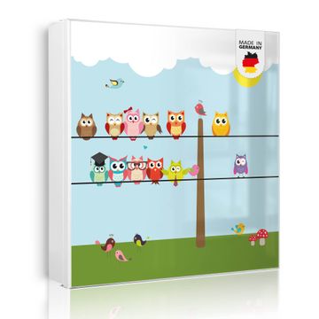 Bringe Ordnung und Eleganz in deinen Eingangsbereich mit dem banjado Schlüsselkasten Motiv Motiv Da Wären Wir. Die moderne Schlüsselbox kombiniert funktionales Design mit hochwertiger Verarbeitung und wird so zu einem echten Hingucker in Flur, Büro oder Ferienwohnung. ✅ Stilvolle Schlüsselaufbewahrung mit Motiv Motiv Da Wären Wir Der Design-Schlüsselkasten Motiv Motiv Da Wären Wir bietet Platz für bis zu 32 Schlüssel, die auf 4 stabilen Reihen mit je 8 Haken übersichtlich verstaut werden. Mit seinen kompakten Maßen von 30 x 30 x 5 cm passt die Schlüsselbox perfekt auch in kleinere Räume. Der weiß lackierte Stahlkorpus mit rechts angeschlagenem Türscharnier harmoniert mit gedruckten Folie auf der Front und fügt sich nahtlos in jedes Wohnambiente ein. Ob als Schlüsselorganizer für Zuhause oder als praktische Lösung für Büros, Praxen und Gewerbe, der banjado Schlüsselkasten sorgt für Ordnung und Übersicht. Dank der magnetischen, mit Kreidestiften beschreibbaren Folie auf der Front kannst du Notizen anheften oder Termine direkt auf der Oberfläche festhalten. Die Schlüsselbox Motiv Motiv Da Wären Wir zur Wandmontage wird inklusive Befestigungsmaterial geliefert und ist schnell angebracht. So hast du deine Schlüssel jederzeit griffbereit und zugleich stilvoll verstaut. Mit diesem banjado Schlüsselkasten Motiv Motiv Da Wären Wir kombinierst du praktische Aufbewahrung mit stilvollem Wohndesign. Ob privat oder geschäftlich, die Schlüsselbox sorgt für mehr Ordnung, Übersicht und ein wohnliches Ambiente.Vorteile im Überblick