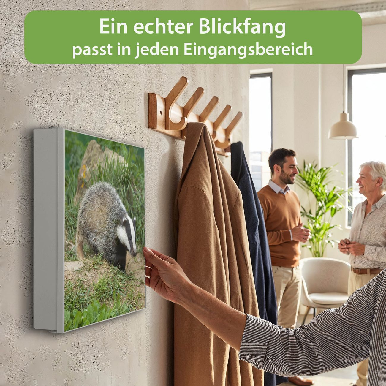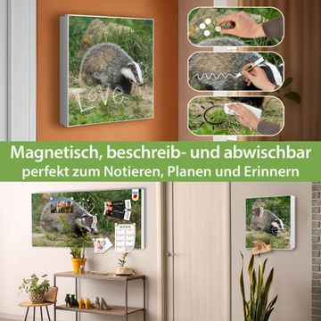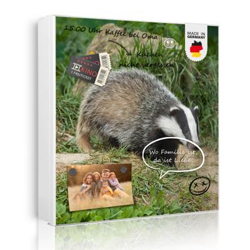 Bringe Ordnung und Eleganz in deinen Eingangsbereich mit dem banjado Schlüsselkasten Motiv Motiv Dachs. Die moderne Schlüsselbox kombiniert funktionales Design mit hochwertiger Verarbeitung und wird so zu einem echten Hingucker in Flur, Büro oder Ferienwohnung. ✅ Stilvolle Schlüsselaufbewahrung mit Motiv Motiv Dachs Der Design-Schlüsselkasten Motiv Motiv Dachs bietet Platz für bis zu 32 Schlüssel, die auf 4 stabilen Reihen mit je 8 Haken übersichtlich verstaut werden. Mit seinen kompakten Maßen von 30 x 30 x 5 cm passt die Schlüsselbox perfekt auch in kleinere Räume. Der weiß lackierte Stahlkorpus mit links angeschlagenem Türscharnier harmoniert mit gedruckten Folie auf der Front und fügt sich nahtlos in jedes Wohnambiente ein. Ob als Schlüsselorganizer für Zuhause oder als praktische Lösung für Büros, Praxen und Gewerbe, der banjado Schlüsselkasten sorgt für Ordnung und Übersicht. Dank der magnetischen, mit Kreidestiften beschreibbaren Folie auf der Front kannst du Notizen anheften oder Termine direkt auf der Oberfläche festhalten. Die Schlüsselbox Motiv Motiv Dachs zur Wandmontage wird inklusive Befestigungsmaterial geliefert und ist schnell angebracht. So hast du deine Schlüssel jederzeit griffbereit und zugleich stilvoll verstaut. Mit diesem banjado Schlüsselkasten Motiv Motiv Dachs kombinierst du praktische Aufbewahrung mit stilvollem Wohndesign. Ob privat oder geschäftlich, die Schlüsselbox sorgt für mehr Ordnung, Übersicht und ein wohnliches Ambiente.Vorteile im Überblick