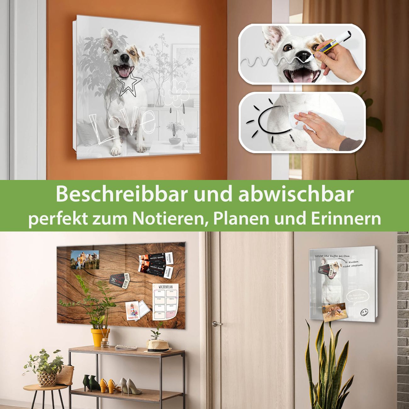 ✅ Magnetisch und mit Kreidestift beschreibbar, gehärtetes Glas, rechts angeschlagene TürOrdnung und Design in einem