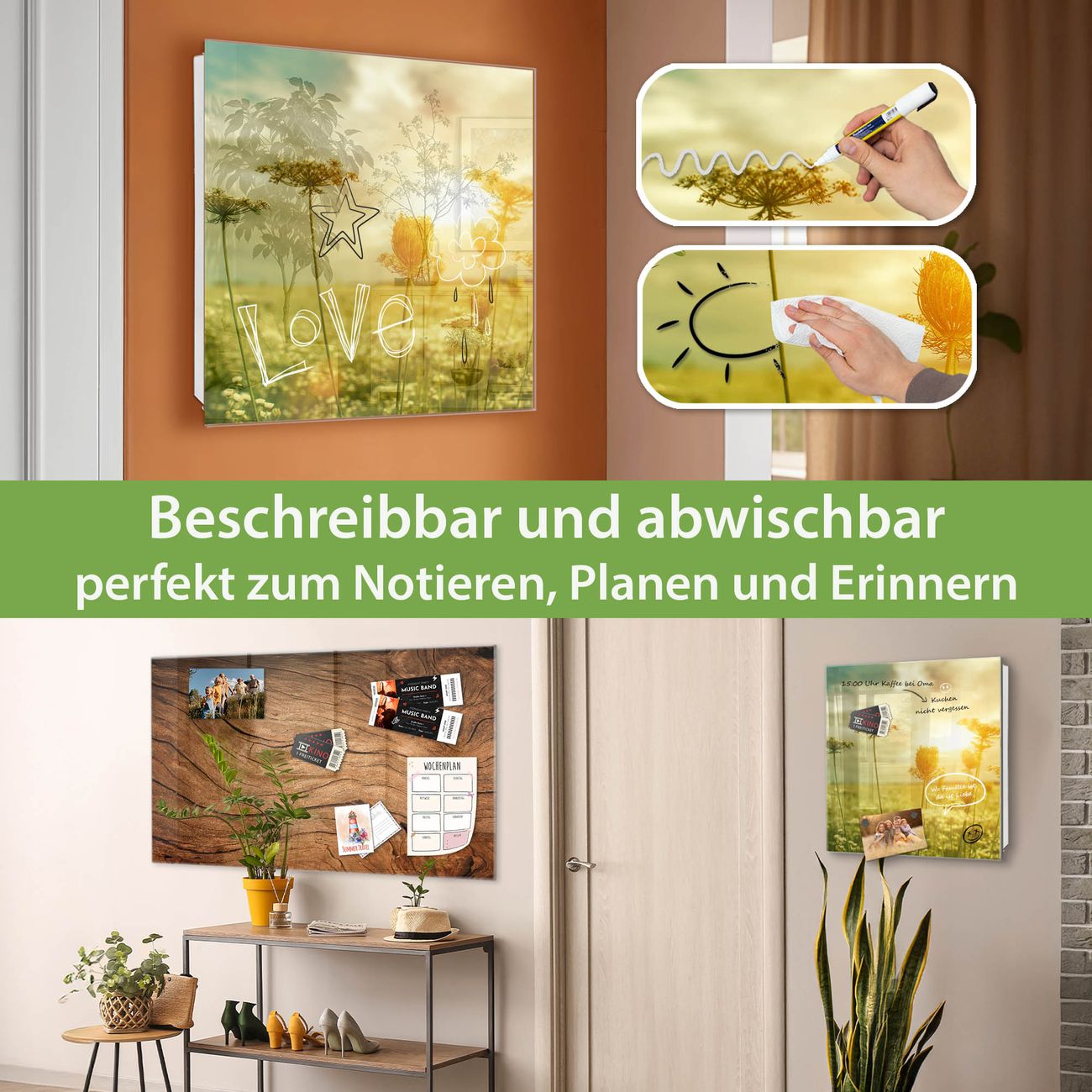 Bringe Ordnung und Eleganz in deinen Eingangsbereich mit dem banjado Schlüsselkasten Motiv Motiv Dill im Sonnenlicht. Die moderne Schlüsselbox kombiniert funktionales Design mit hochwertiger Verarbeitung und wird so zu einem echten Hingucker in Flur, Büro oder Ferienwohnung. ✅ Stilvolle Schlüsselaufbewahrung mit Glasfront im Motiv Motiv Dill im Sonnenlicht Der Design-Schlüsselkasten Motiv Motiv Dill im Sonnenlicht bietet Platz für bis zu 50 Schlüssel, die auf 5 stabilen Reihen mit je 10 Haken übersichtlich verstaut werden. Mit seinen kompakten Maßen von 30 x 30 x 5 cm passt die Schlüsselbox perfekt auch in kleinere Räume. Der weiß lackierte Stahlkorpus mit rechts angeschlagenem Türscharnier harmoniert mit der Glasfront und fügt sich nahtlos in jedes Wohnambiente ein. Ob als Schlüsselorganizer für Zuhause oder als praktische Lösung für Büros, Praxen und Gewerbe, der banjado Schlüsselkasten sorgt für Ordnung und Übersicht. Dank der magnetischen, mit Kreidestiften beschreibbaren Glasfront kannst du Notizen anheften oder Termine direkt auf der Oberfläche festhalten. Die Schlüsselbox Motiv Motiv Dill im Sonnenlicht zur Wandmontage wird inklusive Befestigungsmaterial geliefert und ist schnell angebracht. So hast du deine Schlüssel jederzeit griffbereit und zugleich stilvoll verstaut. Mit diesem banjado Schlüsselkasten Motiv Motiv Dill im Sonnenlicht kombinierst du praktische Aufbewahrung mit stilvollem Wohndesign. Ob privat oder geschäftlich, die Schlüsselbox sorgt für mehr Ordnung, Übersicht und ein wohnliches Ambiente.Vorteile im Überblick