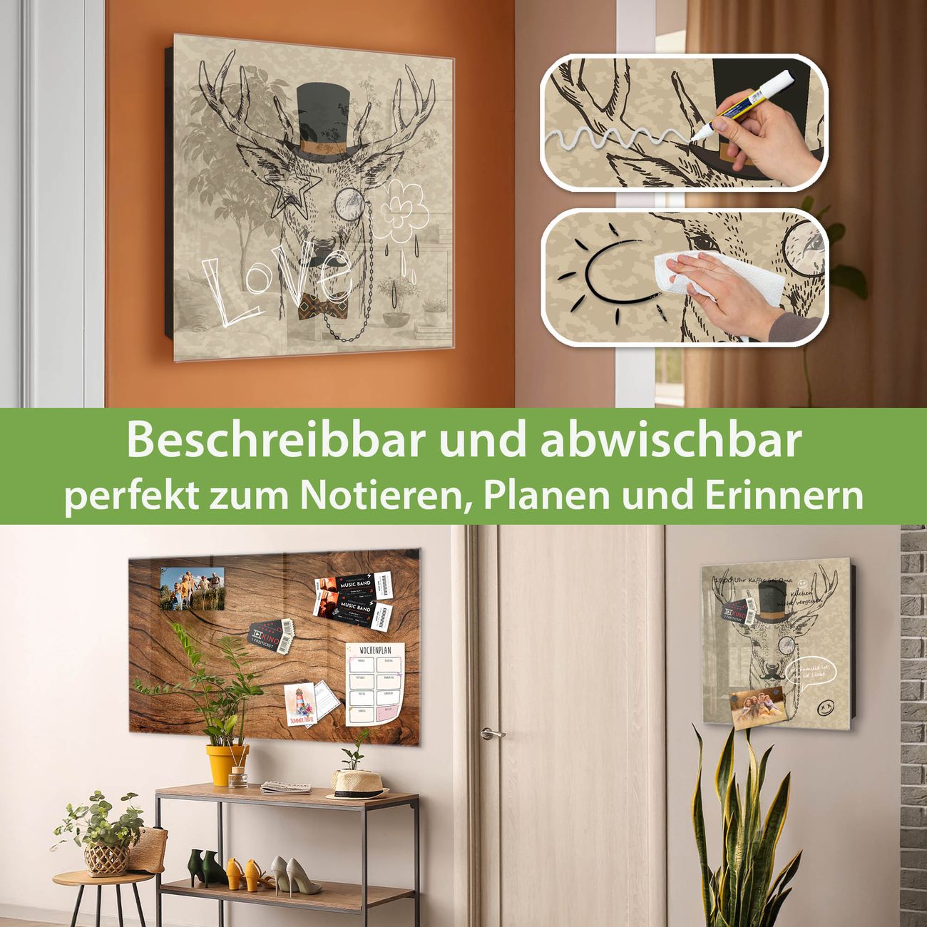 ✅ Magnetisch und mit Kreidestift beschreibbar, gehärtetes Glas, rechts angeschlagene TürOrdnung und Design in einem
