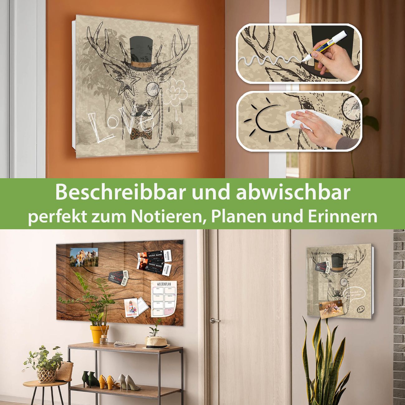 ✅ Magnetisch und mit Kreidestift beschreibbar, gehärtetes Glas, links angeschlagene TürOrdnung und Design in einem