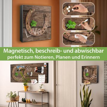 Bringe Ordnung und Eleganz in deinen Eingangsbereich mit dem banjado Schlüsselkasten Motiv Motiv Doppeltes Glück. Die moderne Schlüsselbox kombiniert funktionales Design mit hochwertiger Verarbeitung und wird so zu einem echten Hingucker in Flur, Büro oder Ferienwohnung. ✅ Stilvolle Schlüsselaufbewahrung mit Motiv Motiv Doppeltes Glück Der Design-Schlüsselkasten Motiv Motiv Doppeltes Glück bietet Platz für bis zu 32 Schlüssel, die auf 4 stabilen Reihen mit je 8 Haken übersichtlich verstaut werden. Mit seinen kompakten Maßen von 30 x 30 x 5 cm passt die Schlüsselbox perfekt auch in kleinere Räume. Der schwarz lackierte Stahlkorpus mit rechts angeschlagenem Türscharnier harmoniert mit gedruckten Folie auf der Front und fügt sich nahtlos in jedes Wohnambiente ein. Ob als Schlüsselorganizer für Zuhause oder als praktische Lösung für Büros, Praxen und Gewerbe, der banjado Schlüsselkasten sorgt für Ordnung und Übersicht. Dank der magnetischen, mit Kreidestiften beschreibbaren Folie auf der Front kannst du Notizen anheften oder Termine direkt auf der Oberfläche festhalten. Die Schlüsselbox Motiv Motiv Doppeltes Glück zur Wandmontage wird inklusive Befestigungsmaterial geliefert und ist schnell angebracht. So hast du deine Schlüssel jederzeit griffbereit und zugleich stilvoll verstaut. Mit diesem banjado Schlüsselkasten Motiv Motiv Doppeltes Glück kombinierst du praktische Aufbewahrung mit stilvollem Wohndesign. Ob privat oder geschäftlich, die Schlüsselbox sorgt für mehr Ordnung, Übersicht und ein wohnliches Ambiente.Vorteile im Überblick