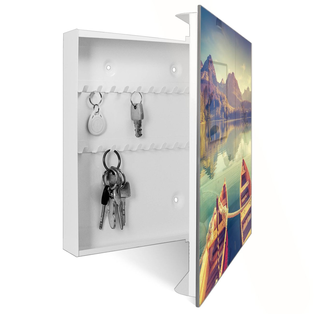 Schlüsselkasten Glas Motiv Drei Boote Am Steg