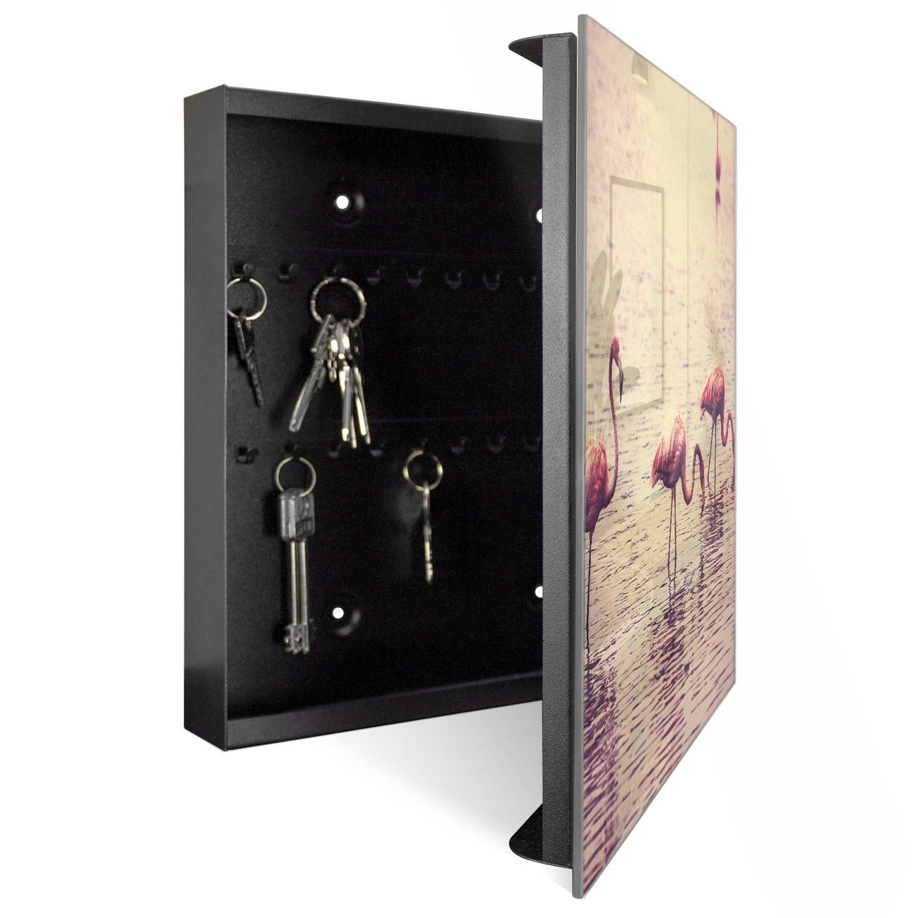 Schlüsselkasten Glas Motiv Drei Flamnigos