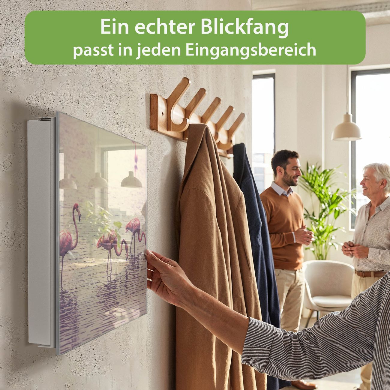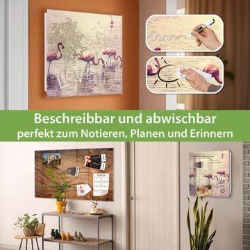 Bringe Ordnung und Eleganz in deinen Eingangsbereich mit dem banjado Schlüsselkasten Motiv Motiv Drei Flamnigos . Die moderne Schlüsselbox kombiniert funktionales Design mit hochwertiger Verarbeitung und wird so zu einem echten Hingucker in Flur, Büro oder Ferienwohnung. ✅ Stilvolle Schlüsselaufbewahrung mit Glasfront im Motiv Motiv Drei Flamnigos Der Design-Schlüsselkasten Motiv Motiv Drei Flamnigos bietet Platz für bis zu 50 Schlüssel, die auf 5 stabilen Reihen mit je 10 Haken übersichtlich verstaut werden. Mit seinen kompakten Maßen von 30 x 30 x 5 cm passt die Schlüsselbox perfekt auch in kleinere Räume. Der weiß lackierte Stahlkorpus mit rechts angeschlagenem Türscharnier harmoniert mit der Glasfront und fügt sich nahtlos in jedes Wohnambiente ein. Ob als Schlüsselorganizer für Zuhause oder als praktische Lösung für Büros, Praxen und Gewerbe, der banjado Schlüsselkasten sorgt für Ordnung und Übersicht. Dank der magnetischen, mit Kreidestiften beschreibbaren Glasfront kannst du Notizen anheften oder Termine direkt auf der Oberfläche festhalten. Die Schlüsselbox Motiv Motiv Drei Flamnigos zur Wandmontage wird inklusive Befestigungsmaterial geliefert und ist schnell angebracht. So hast du deine Schlüssel jederzeit griffbereit und zugleich stilvoll verstaut. Mit diesem banjado Schlüsselkasten Motiv Motiv Drei Flamnigos kombinierst du praktische Aufbewahrung mit stilvollem Wohndesign. Ob privat oder geschäftlich, die Schlüsselbox sorgt für mehr Ordnung, Übersicht und ein wohnliches Ambiente.Vorteile im Überblick