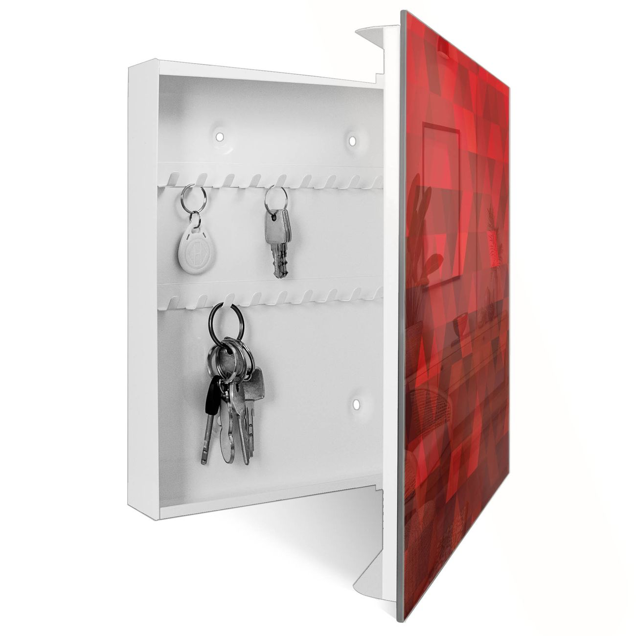 Schlüsselkasten Glas Motiv Dreiecke Rot