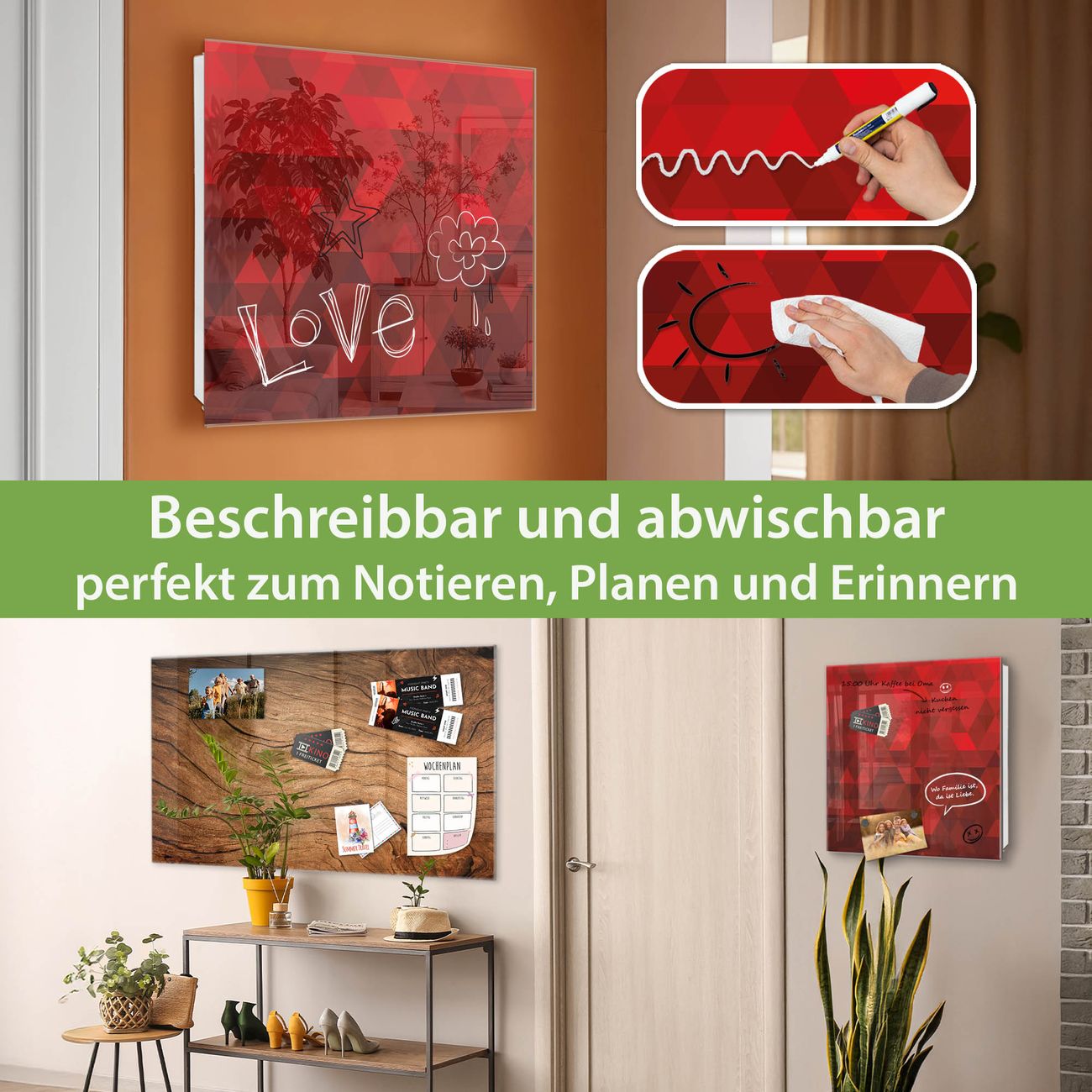 ✅ Magnetisch und mit Kreidestift beschreibbar, gehärtetes Glas, links angeschlagene TürOrdnung und Design in einem