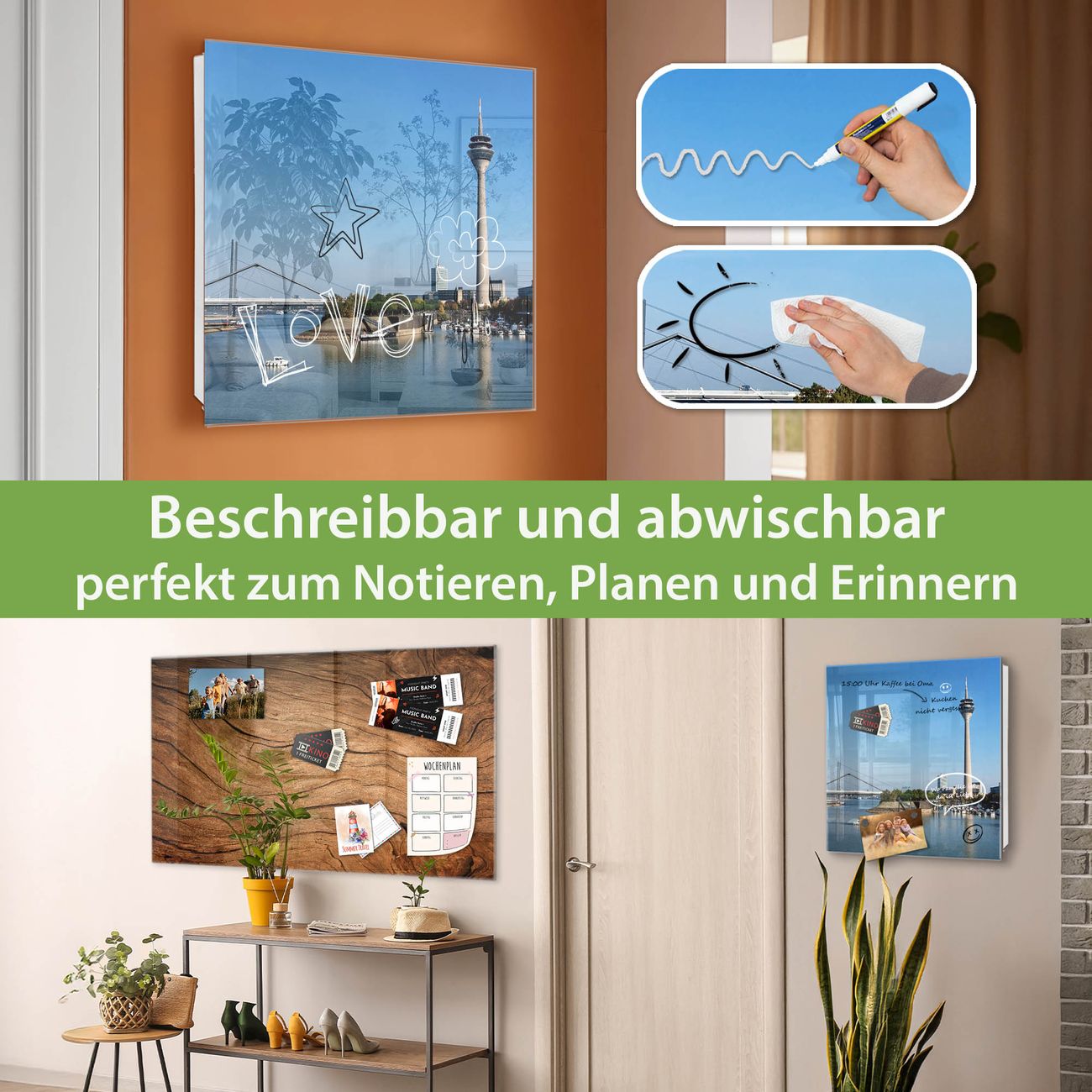 ✅ Magnetisch und mit Kreidestift beschreibbar, gehärtetes Glas, rechts angeschlagene TürOrdnung und Design in einem