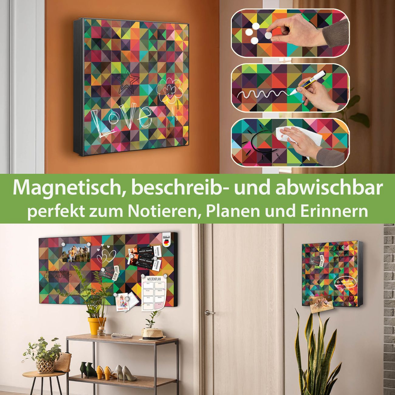 ✅ Magnetisch und mit Kreidestift beschreibbar, rechts angeschlagene TürOrdnung und Design in einem