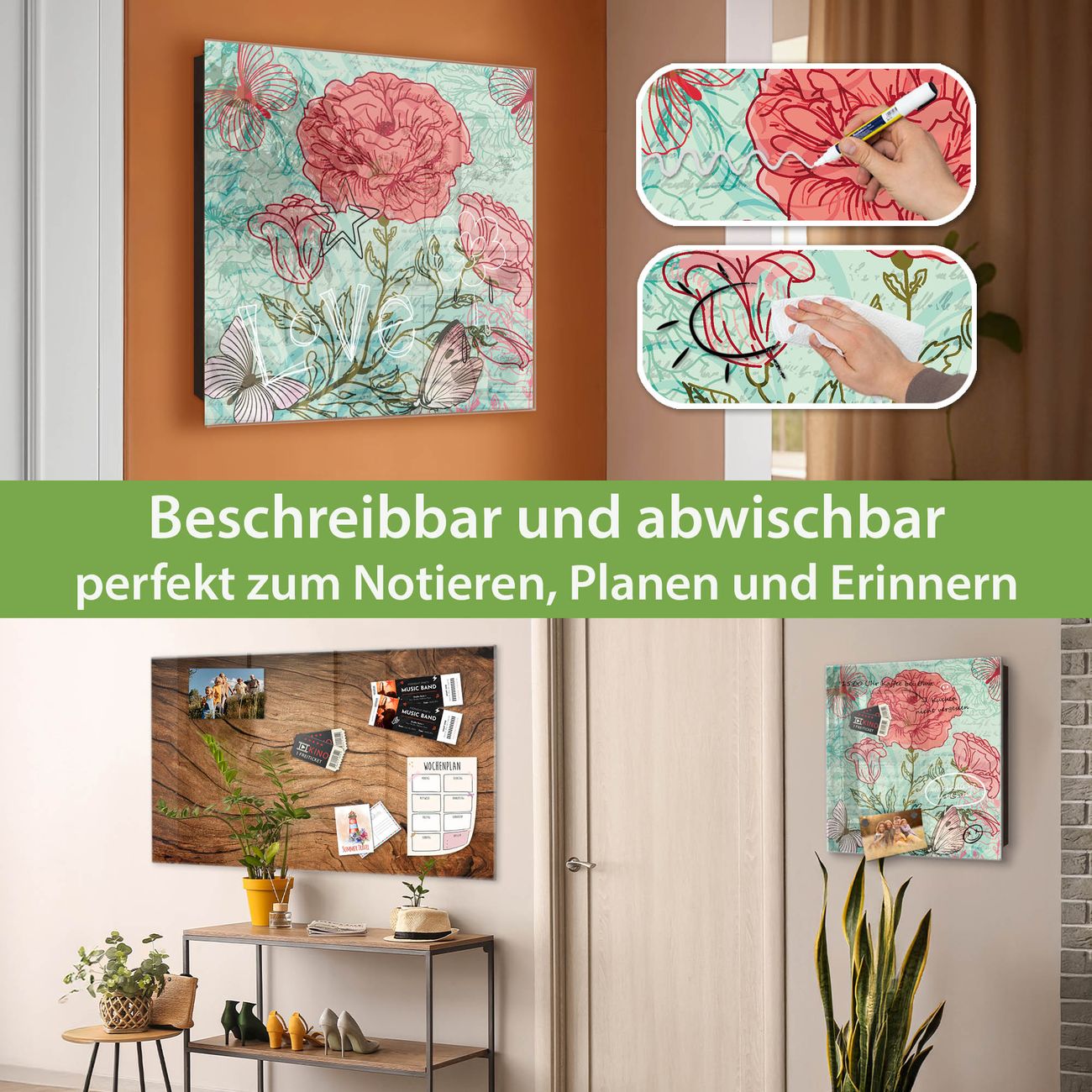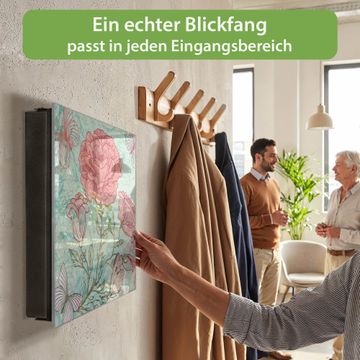 Bringe Ordnung und Eleganz in deinen Eingangsbereich mit dem banjado Schlüsselkasten Motiv Motiv Eine Rose Ist Eine Rose. Die moderne Schlüsselbox kombiniert funktionales Design mit hochwertiger Verarbeitung und wird so zu einem echten Hingucker in Flur, Büro oder Ferienwohnung. ✅ Stilvolle Schlüsselaufbewahrung mit Glasfront im Motiv Motiv Eine Rose Ist Eine Rose Der Design-Schlüsselkasten Motiv Motiv Eine Rose Ist Eine Rose bietet Platz für bis zu 50 Schlüssel, die auf 5 stabilen Reihen mit je 10 Haken übersichtlich verstaut werden. Mit seinen kompakten Maßen von 30 x 30 x 5 cm passt die Schlüsselbox perfekt auch in kleinere Räume. Der schwarz lackierte Stahlkorpus mit rechts angeschlagenem Türscharnier harmoniert mit der Glasfront und fügt sich nahtlos in jedes Wohnambiente ein. Ob als Schlüsselorganizer für Zuhause oder als praktische Lösung für Büros, Praxen und Gewerbe, der banjado Schlüsselkasten sorgt für Ordnung und Übersicht. Dank der magnetischen, mit Kreidestiften beschreibbaren Glasfront kannst du Notizen anheften oder Termine direkt auf der Oberfläche festhalten. Die Schlüsselbox Motiv Motiv Eine Rose Ist Eine Rose zur Wandmontage wird inklusive Befestigungsmaterial geliefert und ist schnell angebracht. So hast du deine Schlüssel jederzeit griffbereit und zugleich stilvoll verstaut. Mit diesem banjado Schlüsselkasten Motiv Motiv Eine Rose Ist Eine Rose kombinierst du praktische Aufbewahrung mit stilvollem Wohndesign. Ob privat oder geschäftlich, die Schlüsselbox sorgt für mehr Ordnung, Übersicht und ein wohnliches Ambiente.Vorteile im Überblick