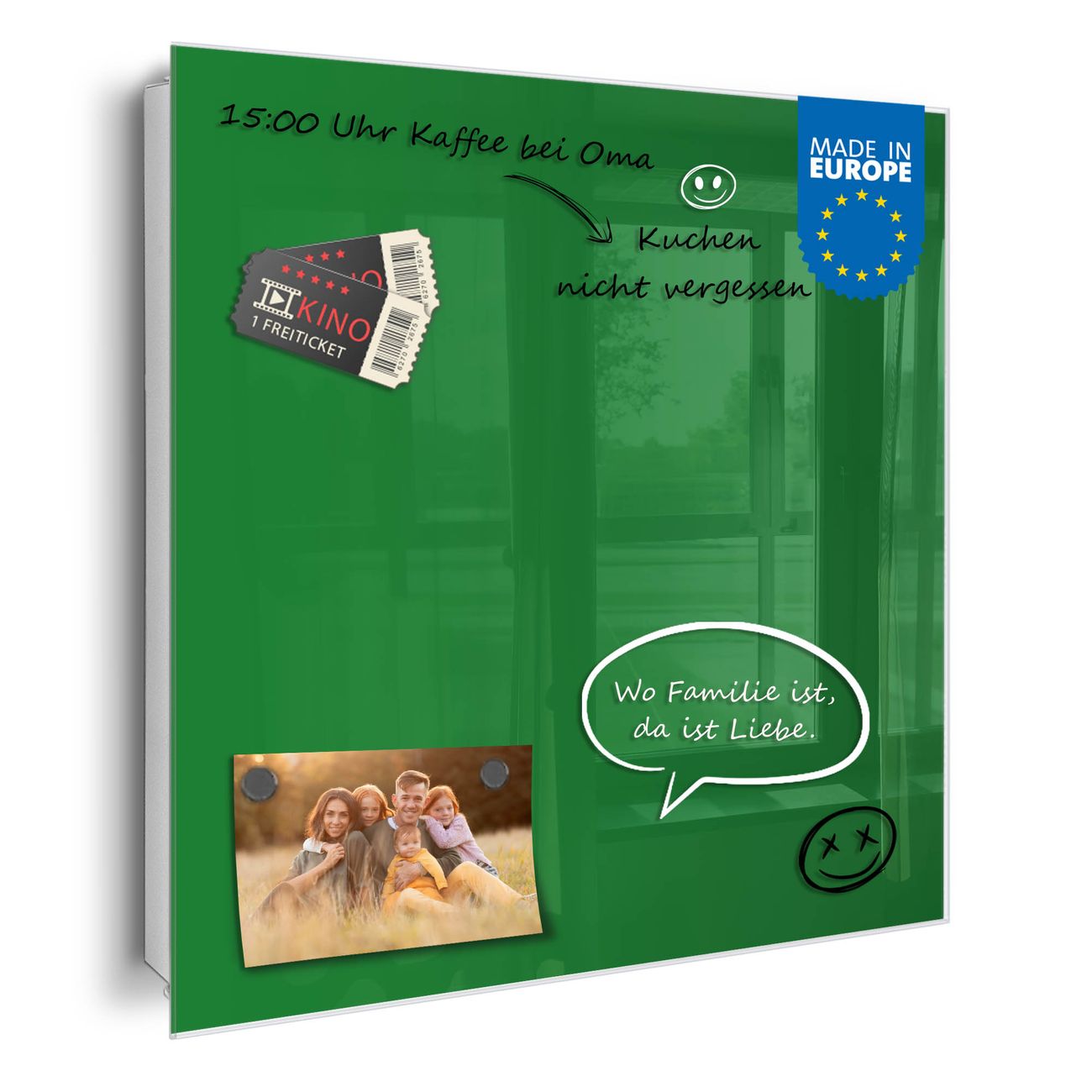 ✅ Magnetisch und mit Kreidestift beschreibbar, gehärtetes Glas, rechts angeschlagene TürOrdnung und Design in einem