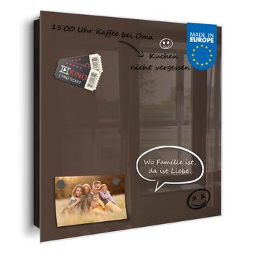 Bringe Ordnung und Eleganz in deinen Eingangsbereich mit dem banjado Schlüsselkasten Motiv Farbe Schokobraun. Die moderne Schlüsselbox kombiniert funktionales Design mit hochwertiger Verarbeitung und wird so zu einem echten Hingucker in Flur, Büro oder Ferienwohnung. ✅ Stilvolle Schlüsselaufbewahrung mit Glasfront im Motiv Farbe Schokobraun Der Design-Schlüsselkasten Motiv Farbe Schokobraun bietet Platz für bis zu 50 Schlüssel, die auf 5 stabilen Reihen mit je 10 Haken übersichtlich verstaut werden. Mit seinen kompakten Maßen von 30 x 30 x 5 cm passt die Schlüsselbox perfekt auch in kleinere Räume. Der schwarz lackierte Stahlkorpus mit rechts angeschlagenem Türscharnier harmoniert mit der Glasfront und fügt sich nahtlos in jedes Wohnambiente ein. Ob als Schlüsselorganizer für Zuhause oder als praktische Lösung für Büros, Praxen und Gewerbe, der banjado Schlüsselkasten sorgt für Ordnung und Übersicht. Dank der magnetischen, mit Kreidestiften beschreibbaren Glasfront kannst du Notizen anheften oder Termine direkt auf der Oberfläche festhalten. Die Schlüsselbox Motiv Farbe Schokobraun zur Wandmontage wird inklusive Befestigungsmaterial geliefert und ist schnell angebracht. So hast du deine Schlüssel jederzeit griffbereit und zugleich stilvoll verstaut. Mit diesem banjado Schlüsselkasten Motiv Farbe Schokobraun kombinierst du praktische Aufbewahrung mit stilvollem Wohndesign. Ob privat oder geschäftlich, die Schlüsselbox sorgt für mehr Ordnung, Übersicht und ein wohnliches Ambiente.Vorteile im Überblick
