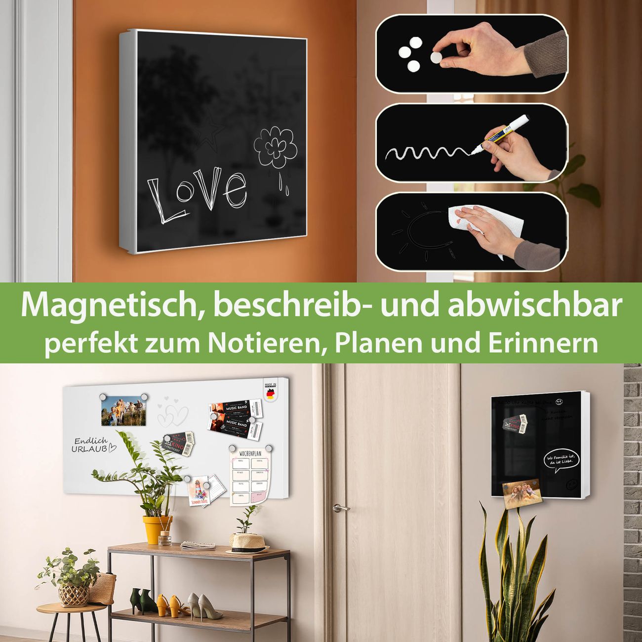 ✅ Magnetisch und mit Kreidestift beschreibbar, links angeschlagene TürOrdnung und Design in einem