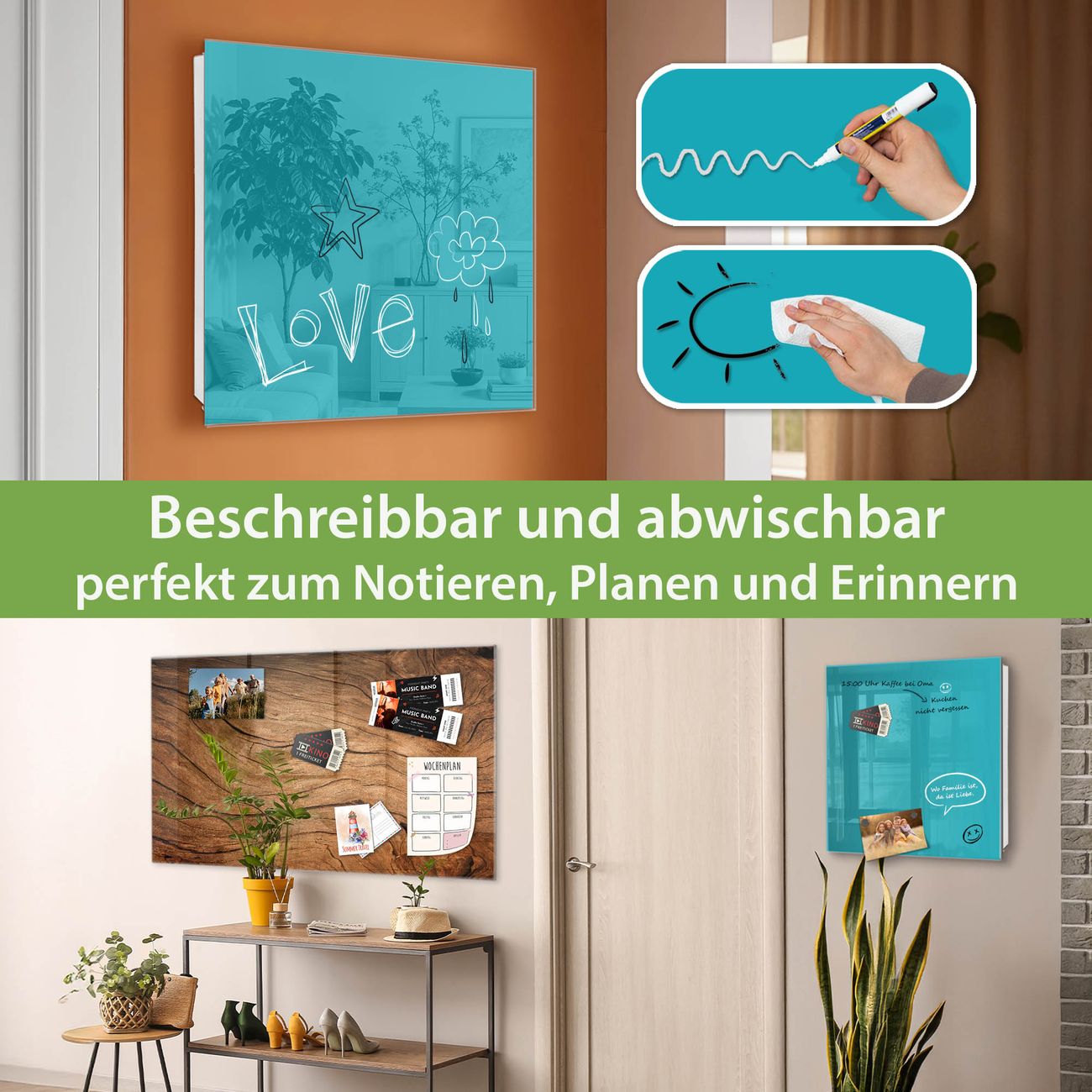 ✅ Magnetisch und mit Kreidestift beschreibbar, gehärtetes Glas, rechts angeschlagene TürOrdnung und Design in einem
