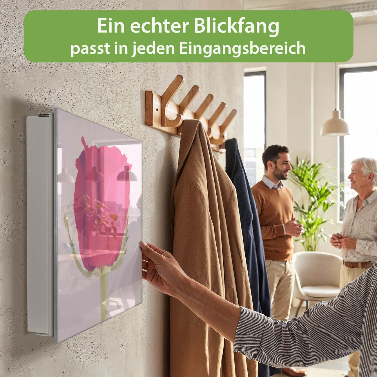 Bringe Ordnung und Eleganz in deinen Eingangsbereich mit dem banjado Schlüsselkasten Motiv Motiv Einzelne Rose. Die moderne Schlüsselbox kombiniert funktionales Design mit hochwertiger Verarbeitung und wird so zu einem echten Hingucker in Flur, Büro oder Ferienwohnung. ✅ Stilvolle Schlüsselaufbewahrung mit Glasfront im Motiv Motiv Einzelne Rose Der Design-Schlüsselkasten Motiv Motiv Einzelne Rose bietet Platz für bis zu 50 Schlüssel, die auf 5 stabilen Reihen mit je 10 Haken übersichtlich verstaut werden. Mit seinen kompakten Maßen von 30 x 30 x 5 cm passt die Schlüsselbox perfekt auch in kleinere Räume. Der weiß lackierte Stahlkorpus mit rechts angeschlagenem Türscharnier harmoniert mit der Glasfront und fügt sich nahtlos in jedes Wohnambiente ein. Ob als Schlüsselorganizer für Zuhause oder als praktische Lösung für Büros, Praxen und Gewerbe, der banjado Schlüsselkasten sorgt für Ordnung und Übersicht. Dank der magnetischen, mit Kreidestiften beschreibbaren Glasfront kannst du Notizen anheften oder Termine direkt auf der Oberfläche festhalten. Die Schlüsselbox Motiv Motiv Einzelne Rose zur Wandmontage wird inklusive Befestigungsmaterial geliefert und ist schnell angebracht. So hast du deine Schlüssel jederzeit griffbereit und zugleich stilvoll verstaut. Mit diesem banjado Schlüsselkasten Motiv Motiv Einzelne Rose kombinierst du praktische Aufbewahrung mit stilvollem Wohndesign. Ob privat oder geschäftlich, die Schlüsselbox sorgt für mehr Ordnung, Übersicht und ein wohnliches Ambiente.Vorteile im Überblick