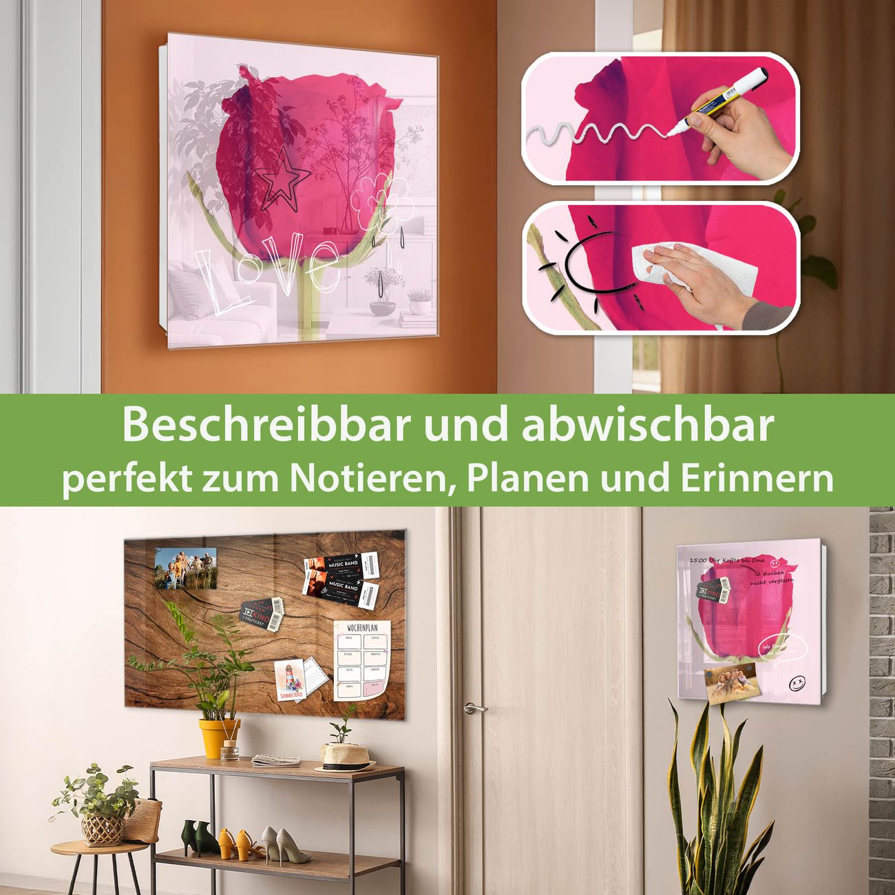 ✅ Magnetisch und mit Kreidestift beschreibbar, gehärtetes Glas, links angeschlagene TürOrdnung und Design in einem