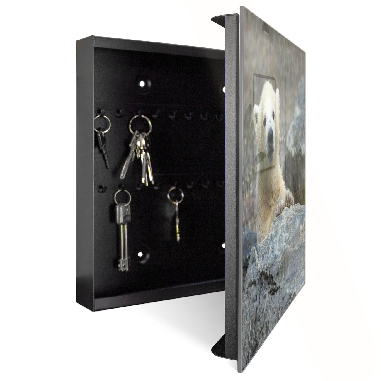 Schlüsselkasten Glas Motiv Eisbär Baby