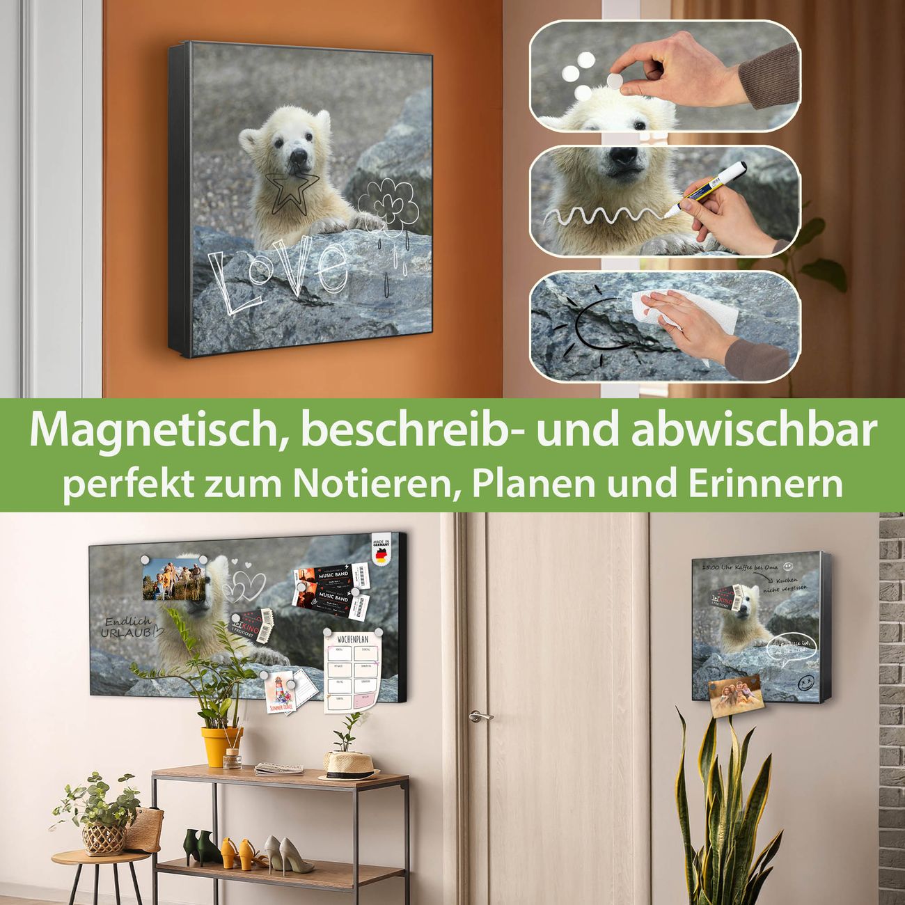 ✅ Magnetisch und mit Kreidestift beschreibbar, links angeschlagene TürOrdnung und Design in einem