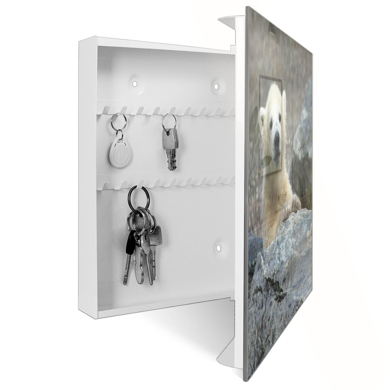 Schlüsselkasten Glas Motiv Eisbär Baby