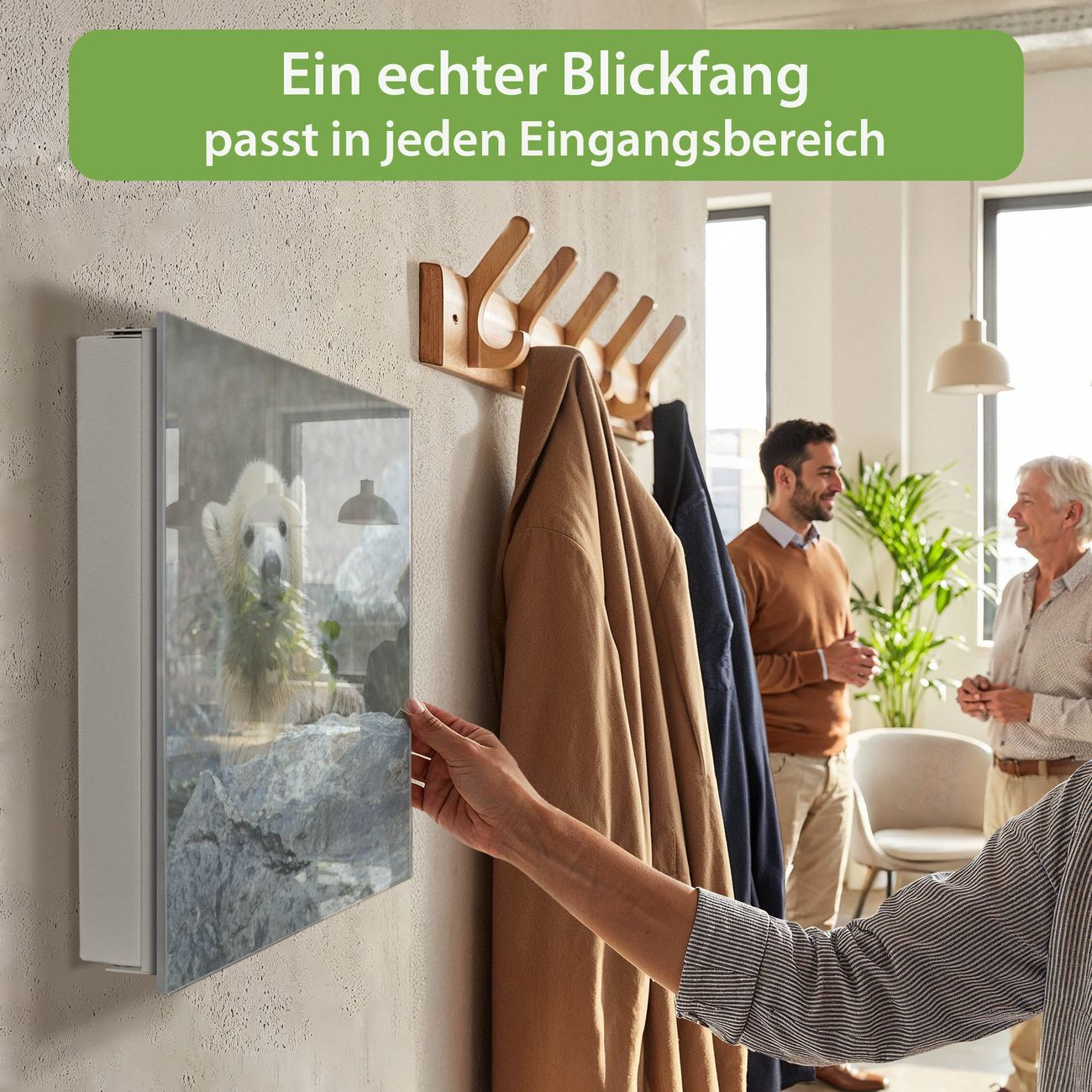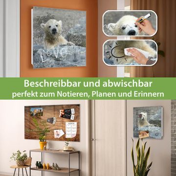 Bringe Ordnung und Eleganz in deinen Eingangsbereich mit dem banjado Schlüsselkasten Motiv Motiv Eisbär Baby. Die moderne Schlüsselbox kombiniert funktionales Design mit hochwertiger Verarbeitung und wird so zu einem echten Hingucker in Flur, Büro oder Ferienwohnung. ✅ Stilvolle Schlüsselaufbewahrung mit Glasfront im Motiv Motiv Eisbär Baby Der Design-Schlüsselkasten Motiv Motiv Eisbär Baby bietet Platz für bis zu 50 Schlüssel, die auf 5 stabilen Reihen mit je 10 Haken übersichtlich verstaut werden. Mit seinen kompakten Maßen von 30 x 30 x 5 cm passt die Schlüsselbox perfekt auch in kleinere Räume. Der weiß lackierte Stahlkorpus mit rechts angeschlagenem Türscharnier harmoniert mit der Glasfront und fügt sich nahtlos in jedes Wohnambiente ein. Ob als Schlüsselorganizer für Zuhause oder als praktische Lösung für Büros, Praxen und Gewerbe, der banjado Schlüsselkasten sorgt für Ordnung und Übersicht. Dank der magnetischen, mit Kreidestiften beschreibbaren Glasfront kannst du Notizen anheften oder Termine direkt auf der Oberfläche festhalten. Die Schlüsselbox Motiv Motiv Eisbär Baby zur Wandmontage wird inklusive Befestigungsmaterial geliefert und ist schnell angebracht. So hast du deine Schlüssel jederzeit griffbereit und zugleich stilvoll verstaut. Mit diesem banjado Schlüsselkasten Motiv Motiv Eisbär Baby kombinierst du praktische Aufbewahrung mit stilvollem Wohndesign. Ob privat oder geschäftlich, die Schlüsselbox sorgt für mehr Ordnung, Übersicht und ein wohnliches Ambiente.Vorteile im Überblick