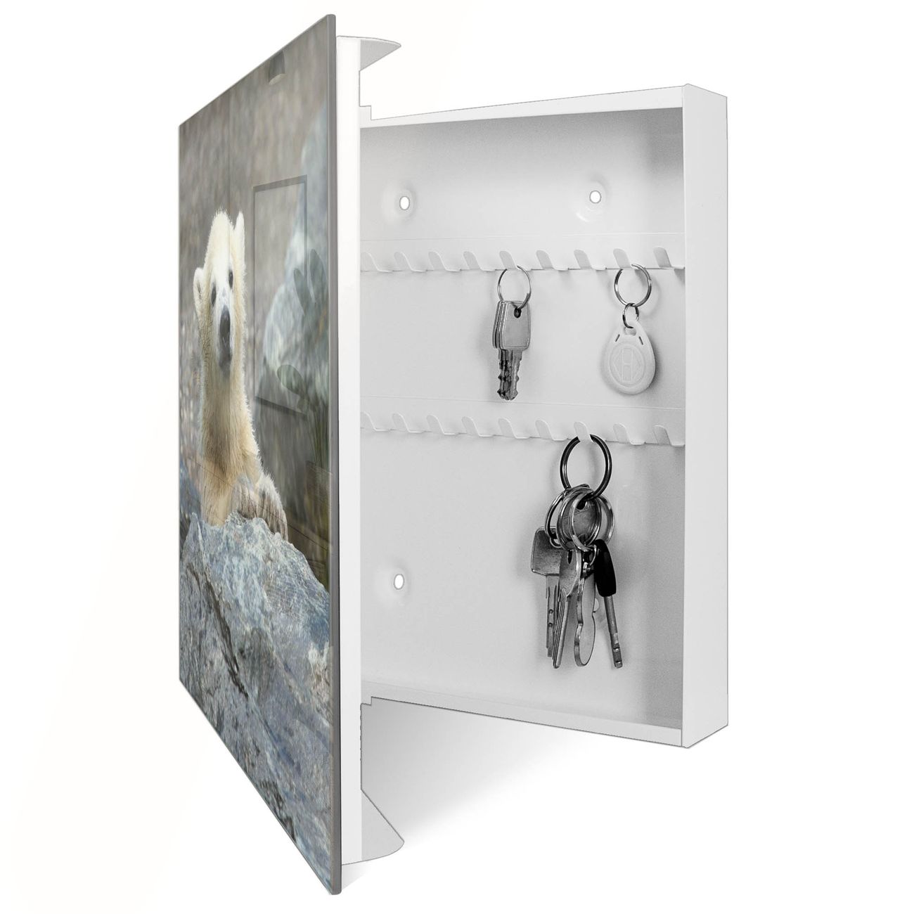 Schlüsselkasten Glas Motiv Eisbär Baby