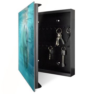 Bringe Ordnung und Eleganz in deinen Eingangsbereich mit dem banjado Schlüsselkasten Motiv Motiv Eisbär unter Wasser. Die moderne Schlüsselbox kombiniert funktionales Design mit hochwertiger Verarbeitung und wird so zu einem echten Hingucker in Flur, Büro oder Ferienwohnung. ✅ Stilvolle Schlüsselaufbewahrung mit Glasfront im Motiv Motiv Eisbär unter Wasser Der Design-Schlüsselkasten Motiv Motiv Eisbär unter Wasser bietet Platz für bis zu 50 Schlüssel, die auf 5 stabilen Reihen mit je 10 Haken übersichtlich verstaut werden. Mit seinen kompakten Maßen von 30 x 30 x 5 cm passt die Schlüsselbox perfekt auch in kleinere Räume. Der schwarz lackierte Stahlkorpus mit rechts angeschlagenem Türscharnier harmoniert mit der Glasfront und fügt sich nahtlos in jedes Wohnambiente ein. Ob als Schlüsselorganizer für Zuhause oder als praktische Lösung für Büros, Praxen und Gewerbe, der banjado Schlüsselkasten sorgt für Ordnung und Übersicht. Dank der magnetischen, mit Kreidestiften beschreibbaren Glasfront kannst du Notizen anheften oder Termine direkt auf der Oberfläche festhalten. Die Schlüsselbox Motiv Motiv Eisbär unter Wasser zur Wandmontage wird inklusive Befestigungsmaterial geliefert und ist schnell angebracht. So hast du deine Schlüssel jederzeit griffbereit und zugleich stilvoll verstaut. Mit diesem banjado Schlüsselkasten Motiv Motiv Eisbär unter Wasser kombinierst du praktische Aufbewahrung mit stilvollem Wohndesign. Ob privat oder geschäftlich, die Schlüsselbox sorgt für mehr Ordnung, Übersicht und ein wohnliches Ambiente.Vorteile im Überblick