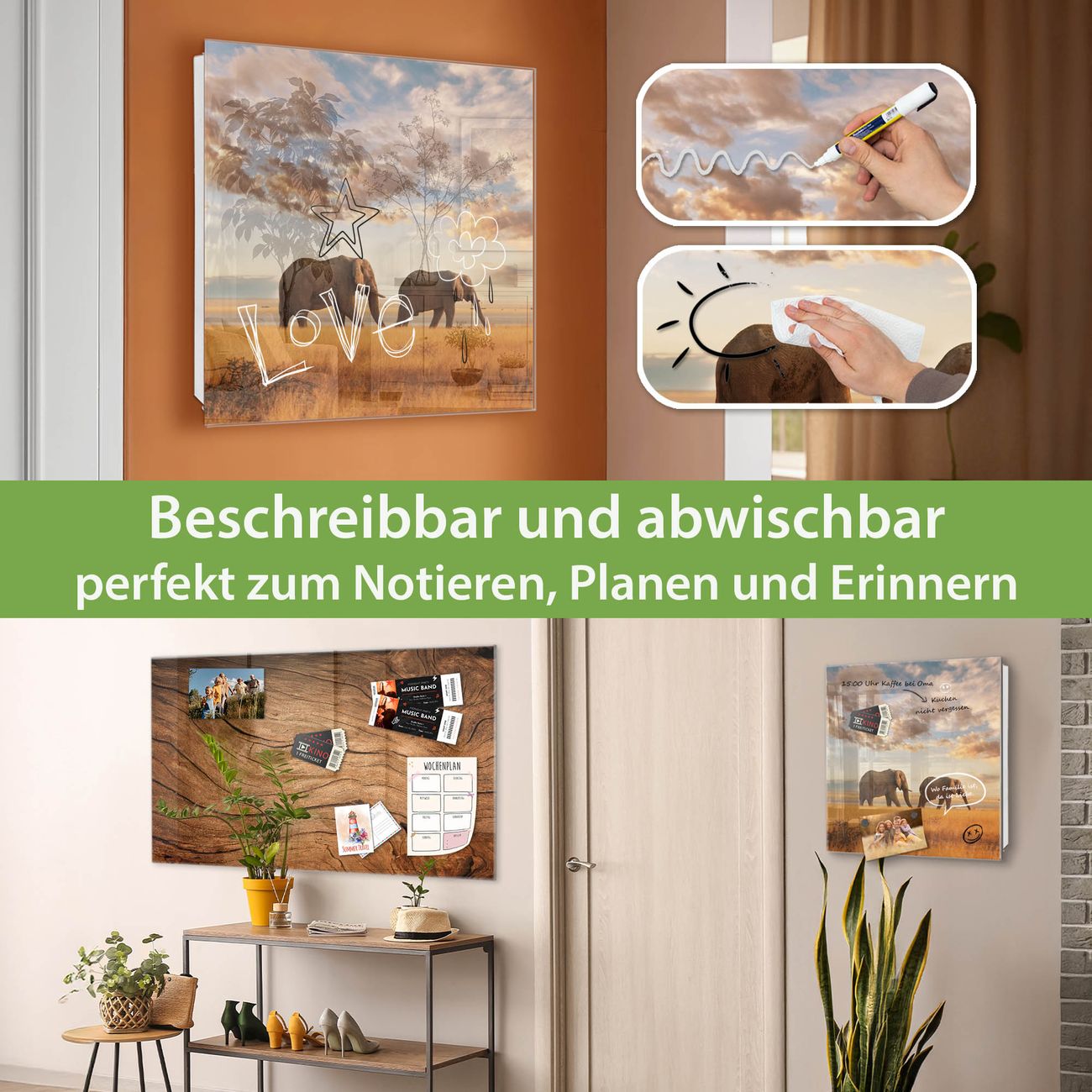 ✅ Magnetisch und mit Kreidestift beschreibbar, gehärtetes Glas, rechts angeschlagene TürOrdnung und Design in einem
