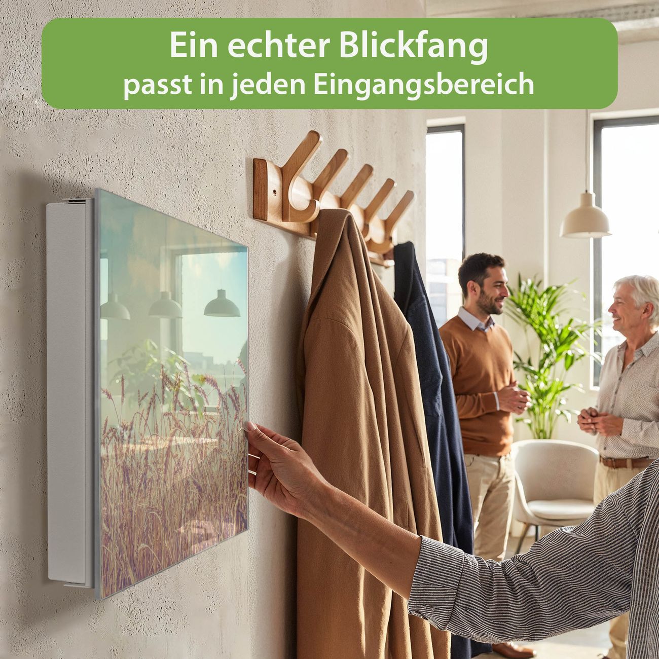 Bringe Ordnung und Eleganz in deinen Eingangsbereich mit dem banjado Schlüsselkasten Motiv Motiv Erntezeit. Die moderne Schlüsselbox kombiniert funktionales Design mit hochwertiger Verarbeitung und wird so zu einem echten Hingucker in Flur, Büro oder Ferienwohnung. ✅ Stilvolle Schlüsselaufbewahrung mit Glasfront im Motiv Motiv Erntezeit Der Design-Schlüsselkasten Motiv Motiv Erntezeit bietet Platz für bis zu 50 Schlüssel, die auf 5 stabilen Reihen mit je 10 Haken übersichtlich verstaut werden. Mit seinen kompakten Maßen von 30 x 30 x 5 cm passt die Schlüsselbox perfekt auch in kleinere Räume. Der weiß lackierte Stahlkorpus mit rechts angeschlagenem Türscharnier harmoniert mit der Glasfront und fügt sich nahtlos in jedes Wohnambiente ein. Ob als Schlüsselorganizer für Zuhause oder als praktische Lösung für Büros, Praxen und Gewerbe, der banjado Schlüsselkasten sorgt für Ordnung und Übersicht. Dank der magnetischen, mit Kreidestiften beschreibbaren Glasfront kannst du Notizen anheften oder Termine direkt auf der Oberfläche festhalten. Die Schlüsselbox Motiv Motiv Erntezeit zur Wandmontage wird inklusive Befestigungsmaterial geliefert und ist schnell angebracht. So hast du deine Schlüssel jederzeit griffbereit und zugleich stilvoll verstaut. Mit diesem banjado Schlüsselkasten Motiv Motiv Erntezeit kombinierst du praktische Aufbewahrung mit stilvollem Wohndesign. Ob privat oder geschäftlich, die Schlüsselbox sorgt für mehr Ordnung, Übersicht und ein wohnliches Ambiente.Vorteile im Überblick