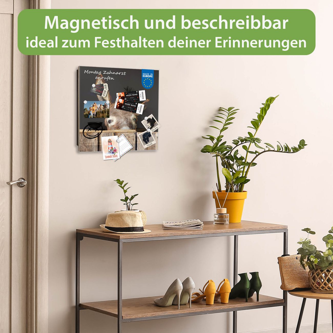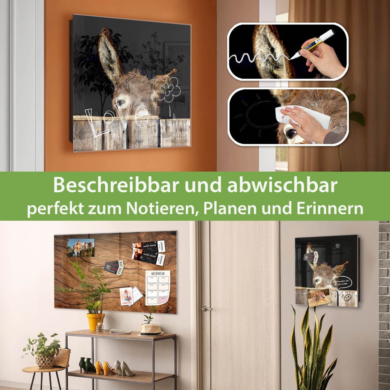 ✅ Magnetisch und mit Kreidestift beschreibbar, gehärtetes Glas, links angeschlagene TürOrdnung und Design in einem