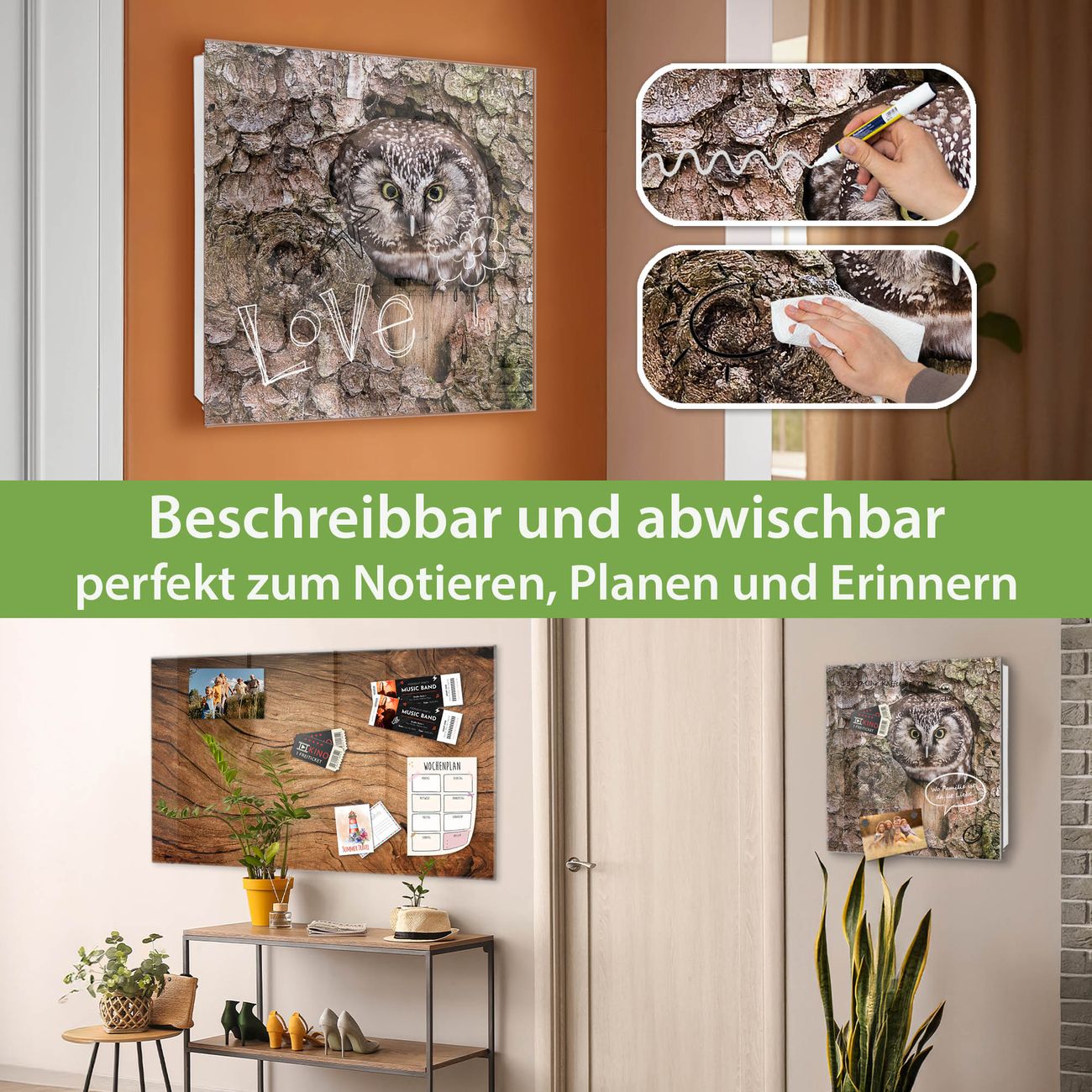 ✅ Magnetisch und mit Kreidestift beschreibbar, gehärtetes Glas, links angeschlagene TürOrdnung und Design in einem