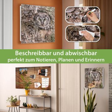 Bringe Ordnung und Eleganz in deinen Eingangsbereich mit dem banjado Schlüsselkasten Motiv Motiv Eule. Die moderne Schlüsselbox kombiniert funktionales Design mit hochwertiger Verarbeitung und wird so zu einem echten Hingucker in Flur, Büro oder Ferienwohnung. ✅ Stilvolle Schlüsselaufbewahrung mit Glasfront im Motiv Motiv Eule Der Design-Schlüsselkasten Motiv Motiv Eule bietet Platz für bis zu 50 Schlüssel, die auf 5 stabilen Reihen mit je 10 Haken übersichtlich verstaut werden. Mit seinen kompakten Maßen von 30 x 30 x 5 cm passt die Schlüsselbox perfekt auch in kleinere Räume. Der weiß lackierte Stahlkorpus mit rechts angeschlagenem Türscharnier harmoniert mit der Glasfront und fügt sich nahtlos in jedes Wohnambiente ein. Ob als Schlüsselorganizer für Zuhause oder als praktische Lösung für Büros, Praxen und Gewerbe, der banjado Schlüsselkasten sorgt für Ordnung und Übersicht. Dank der magnetischen, mit Kreidestiften beschreibbaren Glasfront kannst du Notizen anheften oder Termine direkt auf der Oberfläche festhalten. Die Schlüsselbox Motiv Motiv Eule zur Wandmontage wird inklusive Befestigungsmaterial geliefert und ist schnell angebracht. So hast du deine Schlüssel jederzeit griffbereit und zugleich stilvoll verstaut. Mit diesem banjado Schlüsselkasten Motiv Motiv Eule kombinierst du praktische Aufbewahrung mit stilvollem Wohndesign. Ob privat oder geschäftlich, die Schlüsselbox sorgt für mehr Ordnung, Übersicht und ein wohnliches Ambiente.Vorteile im Überblick