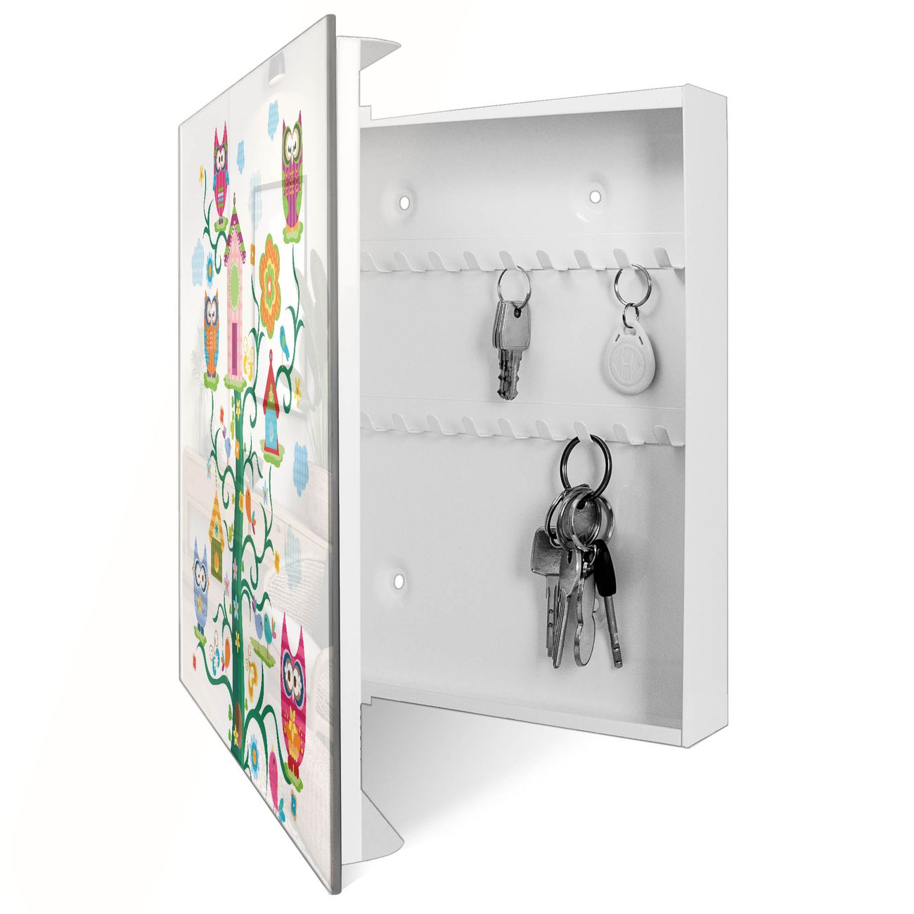 Schlüsselkasten Glas Motiv Eulenfamilie