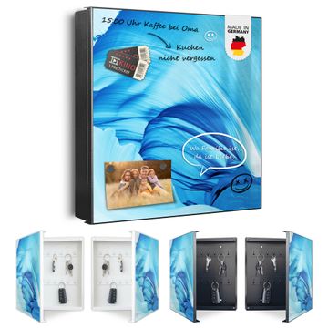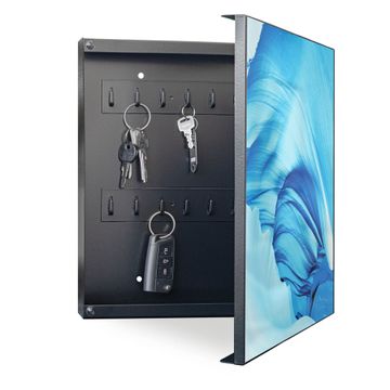 Bringe Ordnung und Eleganz in deinen Eingangsbereich mit dem banjado Schlüsselkasten Motiv Motiv Ewiges Eis. Die moderne Schlüsselbox kombiniert funktionales Design mit hochwertiger Verarbeitung und wird so zu einem echten Hingucker in Flur, Büro oder Ferienwohnung. ✅ Stilvolle Schlüsselaufbewahrung mit Motiv Motiv Ewiges Eis Der Design-Schlüsselkasten Motiv Motiv Ewiges Eis bietet Platz für bis zu 32 Schlüssel, die auf 4 stabilen Reihen mit je 8 Haken übersichtlich verstaut werden. Mit seinen kompakten Maßen von 30 x 30 x 5 cm passt die Schlüsselbox perfekt auch in kleinere Räume. Der schwarz lackierte Stahlkorpus mit rechts angeschlagenem Türscharnier harmoniert mit gedruckten Folie auf der Front und fügt sich nahtlos in jedes Wohnambiente ein. Ob als Schlüsselorganizer für Zuhause oder als praktische Lösung für Büros, Praxen und Gewerbe, der banjado Schlüsselkasten sorgt für Ordnung und Übersicht. Dank der magnetischen, mit Kreidestiften beschreibbaren Folie auf der Front kannst du Notizen anheften oder Termine direkt auf der Oberfläche festhalten. Die Schlüsselbox Motiv Motiv Ewiges Eis zur Wandmontage wird inklusive Befestigungsmaterial geliefert und ist schnell angebracht. So hast du deine Schlüssel jederzeit griffbereit und zugleich stilvoll verstaut. Mit diesem banjado Schlüsselkasten Motiv Motiv Ewiges Eis kombinierst du praktische Aufbewahrung mit stilvollem Wohndesign. Ob privat oder geschäftlich, die Schlüsselbox sorgt für mehr Ordnung, Übersicht und ein wohnliches Ambiente.Vorteile im Überblick