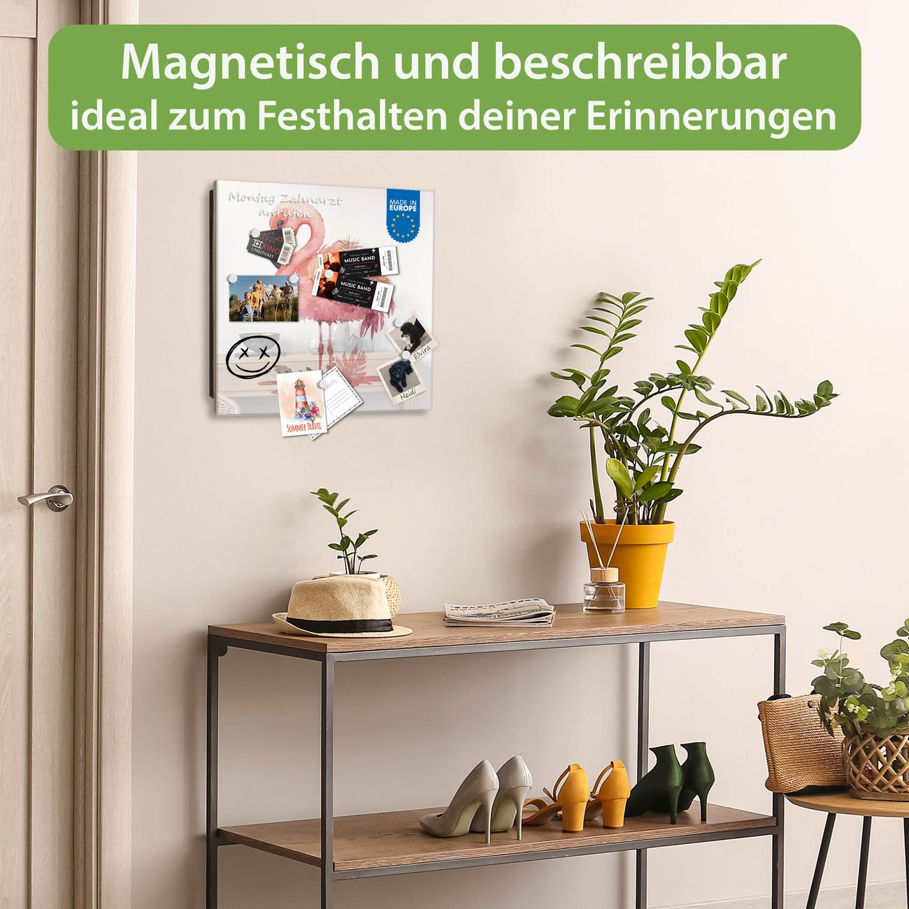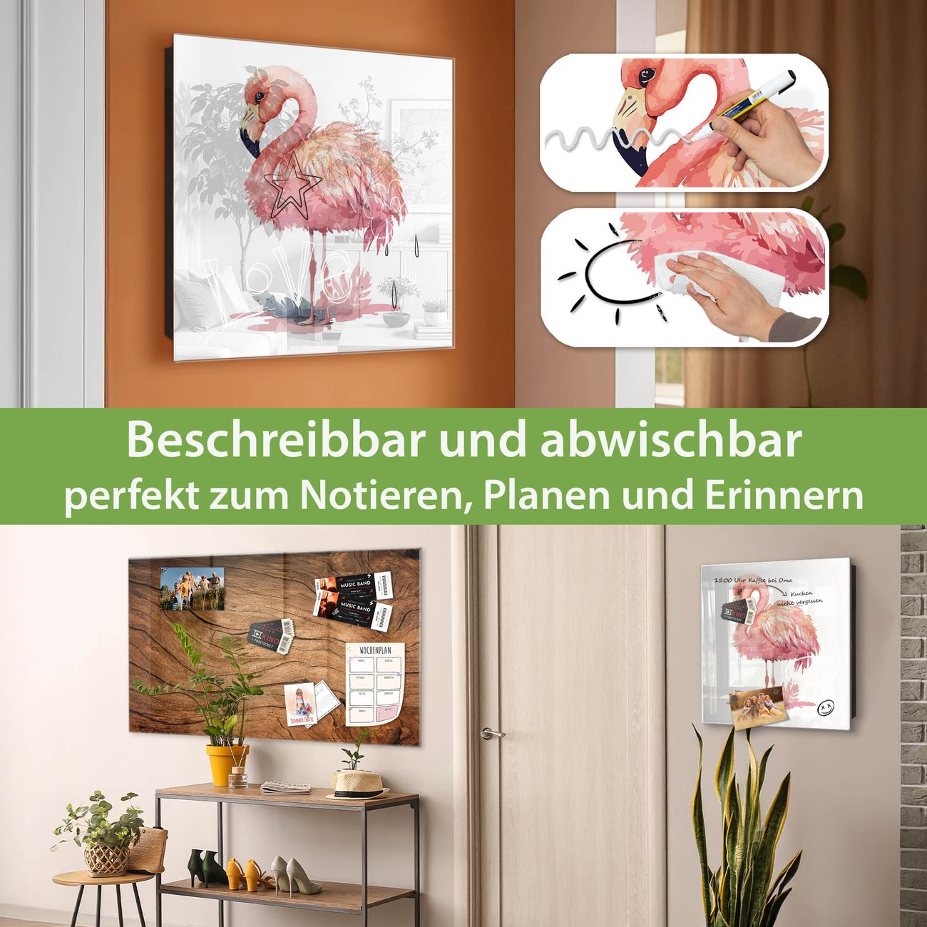 Bringe Ordnung und Eleganz in deinen Eingangsbereich mit dem banjado Schlüsselkasten Motiv Motiv Exotischer Flamingo. Die moderne Schlüsselbox kombiniert funktionales Design mit hochwertiger Verarbeitung und wird so zu einem echten Hingucker in Flur, Büro oder Ferienwohnung. ✅ Stilvolle Schlüsselaufbewahrung mit Glasfront im Motiv Motiv Exotischer Flamingo Der Design-Schlüsselkasten Motiv Motiv Exotischer Flamingo bietet Platz für bis zu 50 Schlüssel, die auf 5 stabilen Reihen mit je 10 Haken übersichtlich verstaut werden. Mit seinen kompakten Maßen von 30 x 30 x 5 cm passt die Schlüsselbox perfekt auch in kleinere Räume. Der schwarz lackierte Stahlkorpus mit rechts angeschlagenem Türscharnier harmoniert mit der Glasfront und fügt sich nahtlos in jedes Wohnambiente ein. Ob als Schlüsselorganizer für Zuhause oder als praktische Lösung für Büros, Praxen und Gewerbe, der banjado Schlüsselkasten sorgt für Ordnung und Übersicht. Dank der magnetischen, mit Kreidestiften beschreibbaren Glasfront kannst du Notizen anheften oder Termine direkt auf der Oberfläche festhalten. Die Schlüsselbox Motiv Motiv Exotischer Flamingo zur Wandmontage wird inklusive Befestigungsmaterial geliefert und ist schnell angebracht. So hast du deine Schlüssel jederzeit griffbereit und zugleich stilvoll verstaut. Mit diesem banjado Schlüsselkasten Motiv Motiv Exotischer Flamingo kombinierst du praktische Aufbewahrung mit stilvollem Wohndesign. Ob privat oder geschäftlich, die Schlüsselbox sorgt für mehr Ordnung, Übersicht und ein wohnliches Ambiente.Vorteile im Überblick