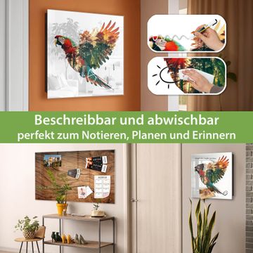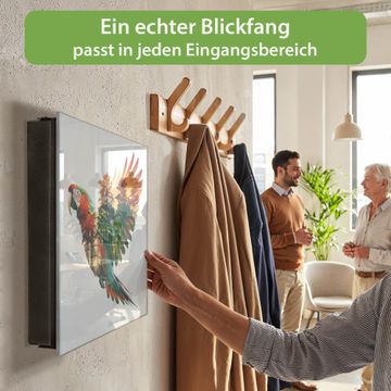 Bringe Ordnung und Eleganz in deinen Eingangsbereich mit dem banjado Schlüsselkasten Motiv Motiv Exotischer Freiheit. Die moderne Schlüsselbox kombiniert funktionales Design mit hochwertiger Verarbeitung und wird so zu einem echten Hingucker in Flur, Büro oder Ferienwohnung. ✅ Stilvolle Schlüsselaufbewahrung mit Glasfront im Motiv Motiv Exotischer Freiheit Der Design-Schlüsselkasten Motiv Motiv Exotischer Freiheit bietet Platz für bis zu 50 Schlüssel, die auf 5 stabilen Reihen mit je 10 Haken übersichtlich verstaut werden. Mit seinen kompakten Maßen von 30 x 30 x 5 cm passt die Schlüsselbox perfekt auch in kleinere Räume. Der schwarz lackierte Stahlkorpus mit rechts angeschlagenem Türscharnier harmoniert mit der Glasfront und fügt sich nahtlos in jedes Wohnambiente ein. Ob als Schlüsselorganizer für Zuhause oder als praktische Lösung für Büros, Praxen und Gewerbe, der banjado Schlüsselkasten sorgt für Ordnung und Übersicht. Dank der magnetischen, mit Kreidestiften beschreibbaren Glasfront kannst du Notizen anheften oder Termine direkt auf der Oberfläche festhalten. Die Schlüsselbox Motiv Motiv Exotischer Freiheit zur Wandmontage wird inklusive Befestigungsmaterial geliefert und ist schnell angebracht. So hast du deine Schlüssel jederzeit griffbereit und zugleich stilvoll verstaut. Mit diesem banjado Schlüsselkasten Motiv Motiv Exotischer Freiheit kombinierst du praktische Aufbewahrung mit stilvollem Wohndesign. Ob privat oder geschäftlich, die Schlüsselbox sorgt für mehr Ordnung, Übersicht und ein wohnliches Ambiente.Vorteile im Überblick