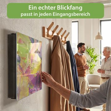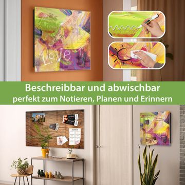 Bringe Ordnung und Eleganz in deinen Eingangsbereich mit dem banjado Schlüsselkasten Motiv Motiv Farbe auf Leinwand. Die moderne Schlüsselbox kombiniert funktionales Design mit hochwertiger Verarbeitung und wird so zu einem echten Hingucker in Flur, Büro oder Ferienwohnung. ✅ Stilvolle Schlüsselaufbewahrung mit Glasfront im Motiv Motiv Farbe auf Leinwand Der Design-Schlüsselkasten Motiv Motiv Farbe auf Leinwand bietet Platz für bis zu 50 Schlüssel, die auf 5 stabilen Reihen mit je 10 Haken übersichtlich verstaut werden. Mit seinen kompakten Maßen von 30 x 30 x 5 cm passt die Schlüsselbox perfekt auch in kleinere Räume. Der schwarz lackierte Stahlkorpus mit rechts angeschlagenem Türscharnier harmoniert mit der Glasfront und fügt sich nahtlos in jedes Wohnambiente ein. Ob als Schlüsselorganizer für Zuhause oder als praktische Lösung für Büros, Praxen und Gewerbe, der banjado Schlüsselkasten sorgt für Ordnung und Übersicht. Dank der magnetischen, mit Kreidestiften beschreibbaren Glasfront kannst du Notizen anheften oder Termine direkt auf der Oberfläche festhalten. Die Schlüsselbox Motiv Motiv Farbe auf Leinwand zur Wandmontage wird inklusive Befestigungsmaterial geliefert und ist schnell angebracht. So hast du deine Schlüssel jederzeit griffbereit und zugleich stilvoll verstaut. Mit diesem banjado Schlüsselkasten Motiv Motiv Farbe auf Leinwand kombinierst du praktische Aufbewahrung mit stilvollem Wohndesign. Ob privat oder geschäftlich, die Schlüsselbox sorgt für mehr Ordnung, Übersicht und ein wohnliches Ambiente.Vorteile im Überblick