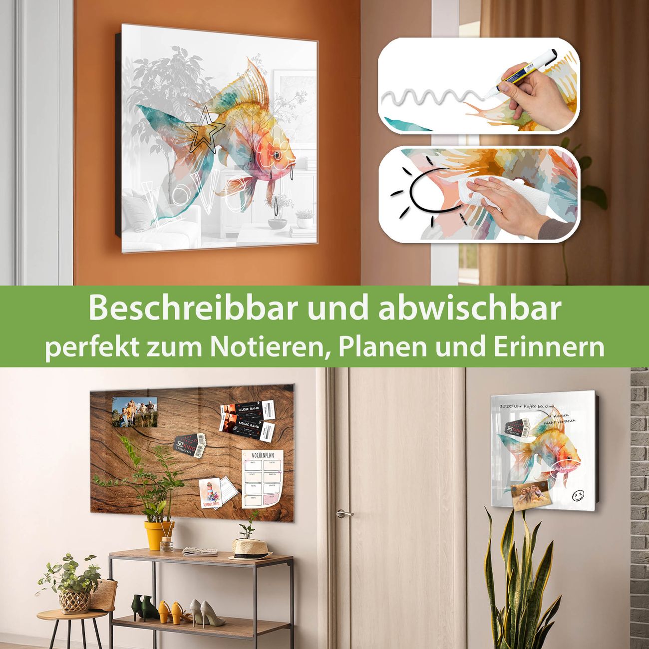 ✅ Magnetisch und mit Kreidestift beschreibbar, gehärtetes Glas, rechts angeschlagene TürOrdnung und Design in einem