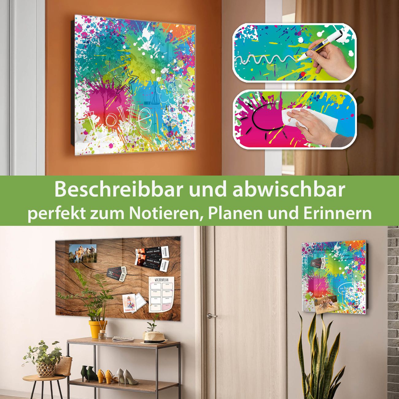 ✅ Magnetisch und mit Kreidestift beschreibbar, gehärtetes Glas, links angeschlagene TürOrdnung und Design in einem